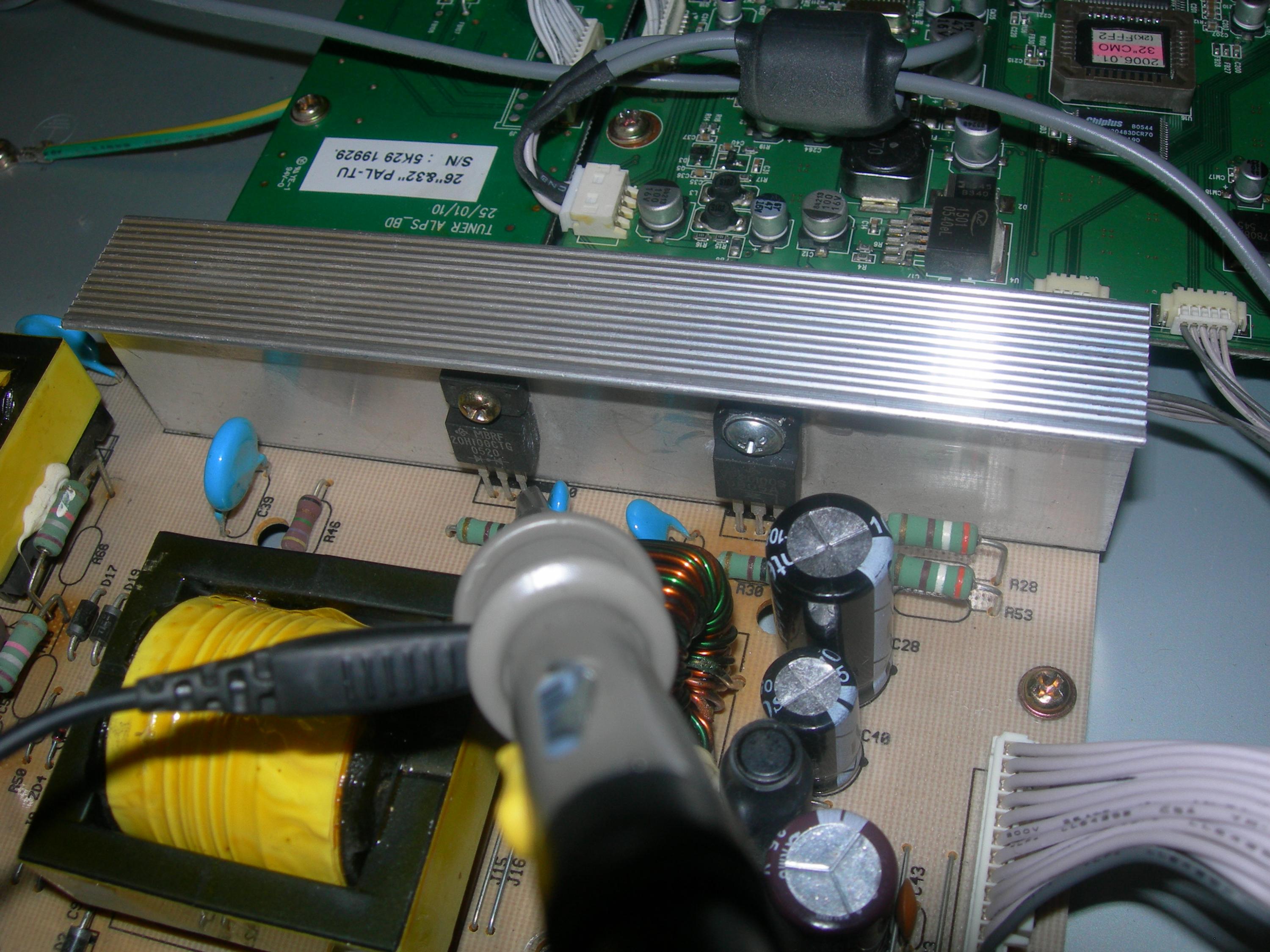 Picked this up for a tenner, it has had some work done on it. Rails, 12V and 24V, are completely dead. This TV doesn't use a standby power supply, it keeps the 12V and 24V on all the time, it just uses the ON/OFF on the inverter to turn the TV off... seems a little dodgy, ya think?
