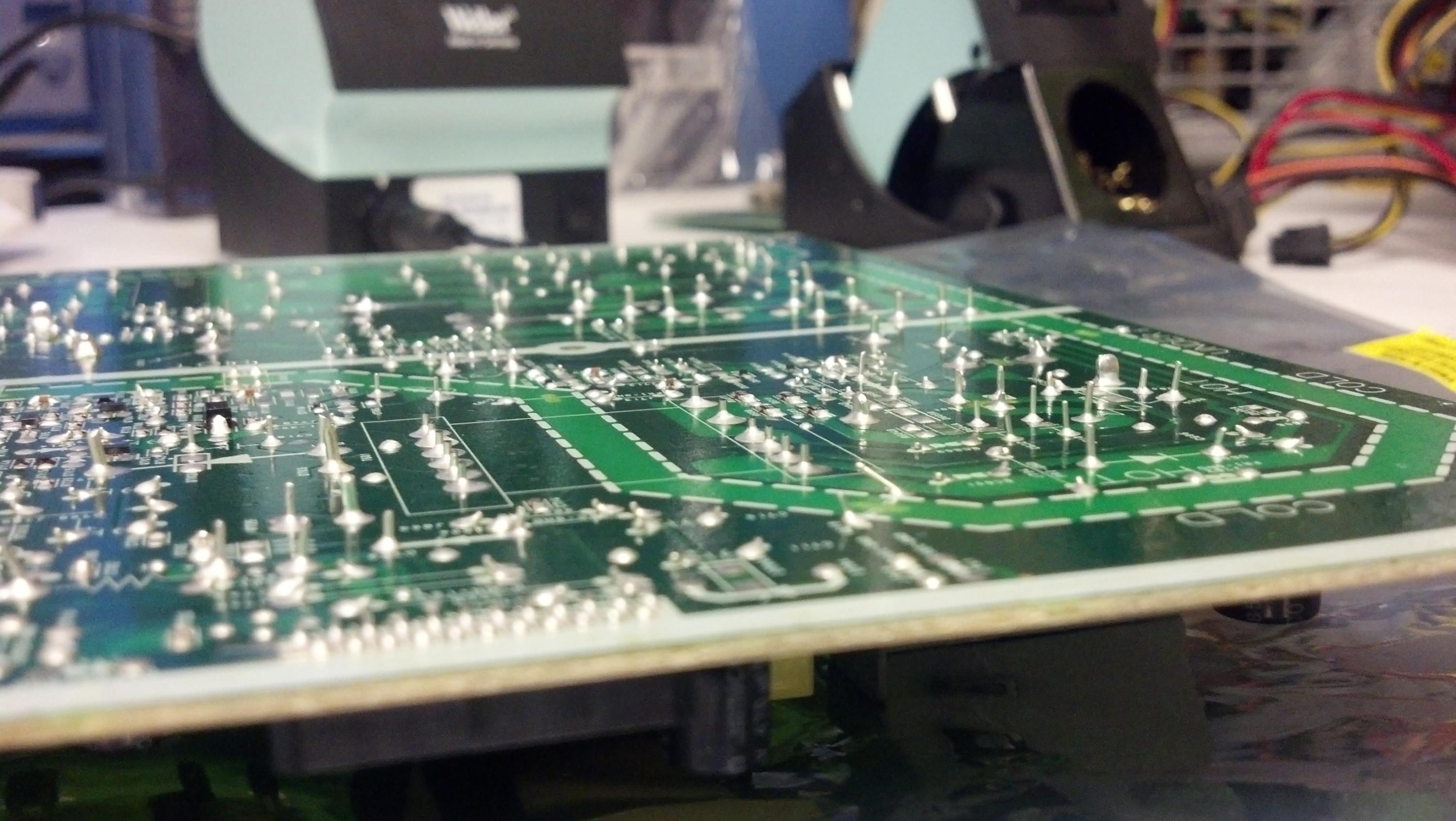 I increased the voltage cause that's all I had were 50V caps with that capacitance Yeah the heatsinks are pathetic indeed. Good thing it will be running in a cold room (60F) most of its life. Should I replace those 470uF caps with 820? Might help a bit. Look at how long some of the leads are!!!!