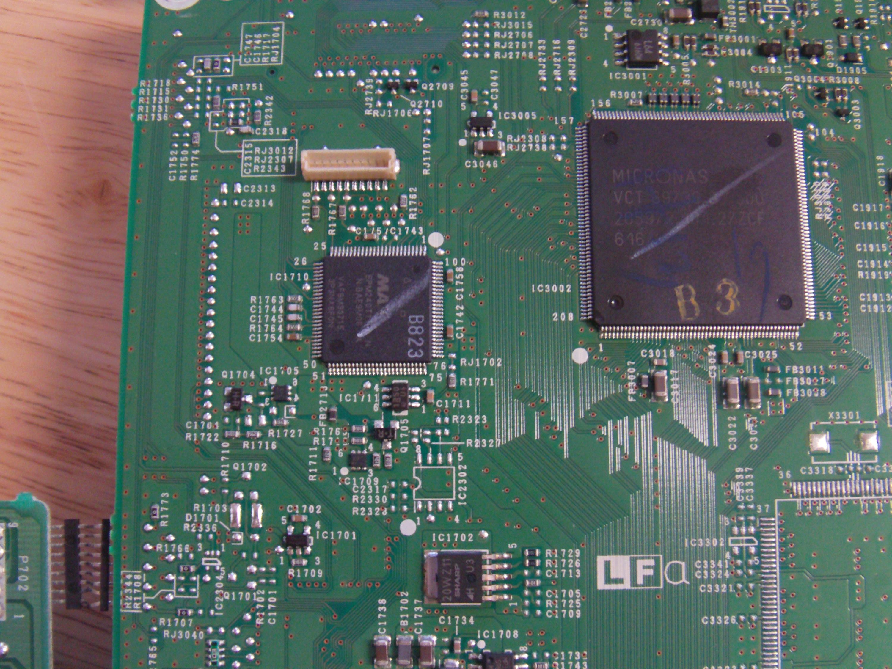 Here is some pics of the mainboard, in the service manual it says BU5V goes to 2 voltage regs, a 3.3v and 1.8v reg but i cant find them to test them?