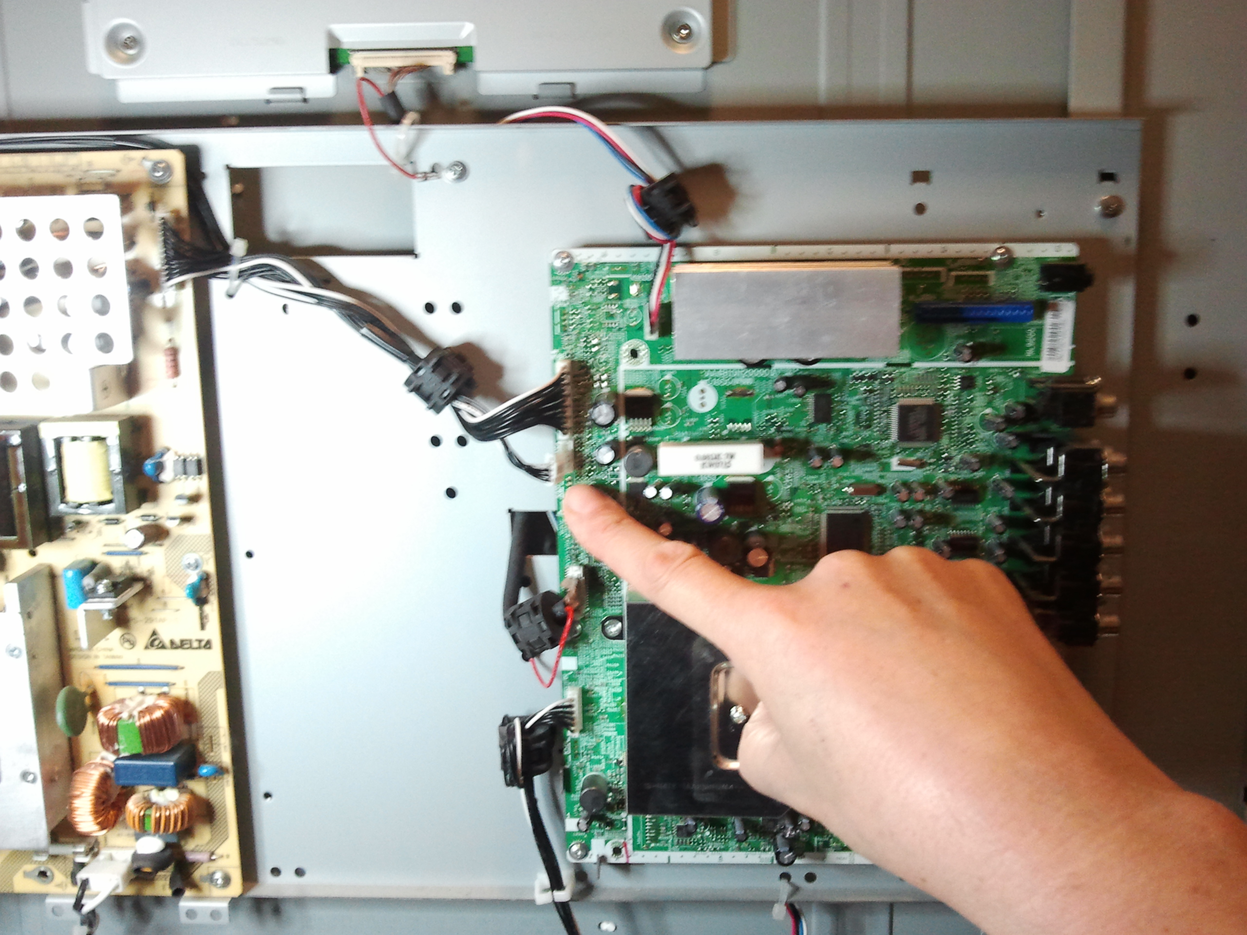 I'm attempting to repair a Sanyo DP42647 LCD TV, chassis no: P42647-00, ser. no: B7280916771748, assembled JULY 2007 in Mexico. My daughter reports she was watching TV from 75 ohm source, when sound quit. She turned set off to attempt to fix problem. Set turned off, but no sound or picture when switched back on. Green "system on" light is working.