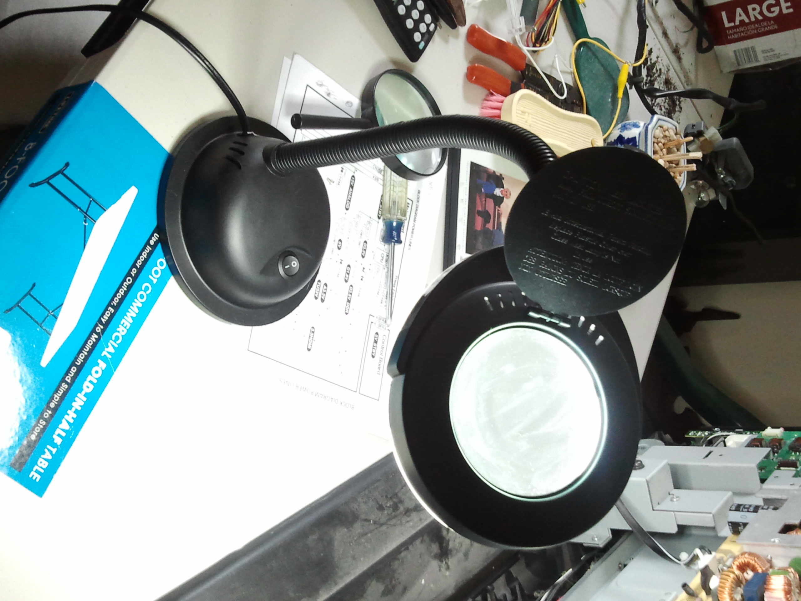 Will post pictures when I figure out how. (I have inspected both sides of all boards with a magnifiing glass, and I don't see any bad caps, blown fuses, or burnt areas.)
