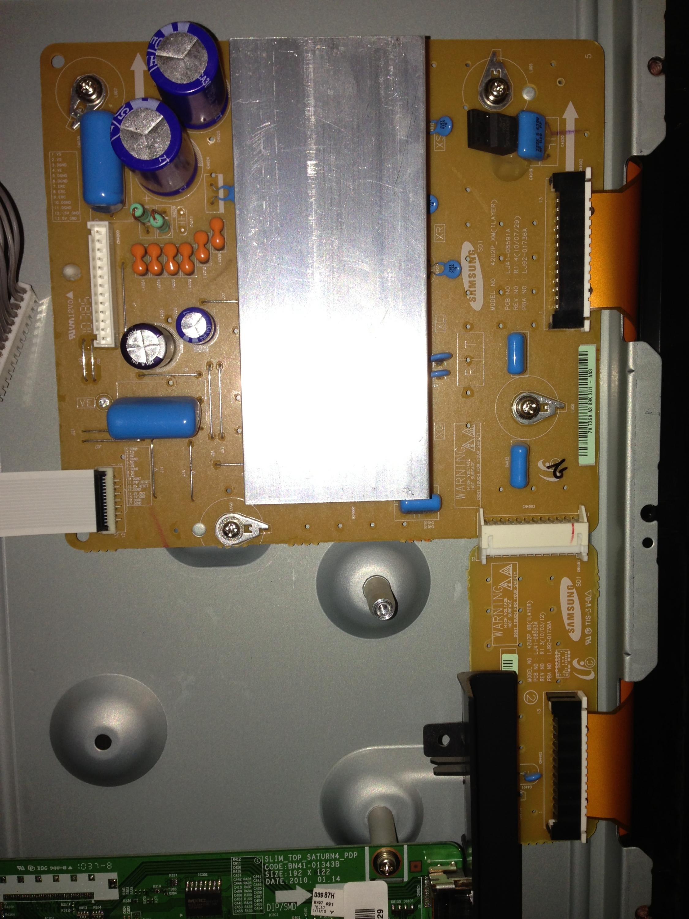 Long time lurker, first time poster. My 42" Samsung plasma TV does not power on; instead a series of relay clicks are heard. I've formed my conclusion and want to bounce ideas off you guys. No bulged, discolored, smelly, or otherwise incorrect-looking caps or ICs anywhere.
