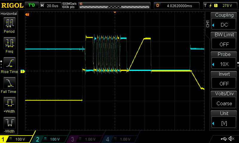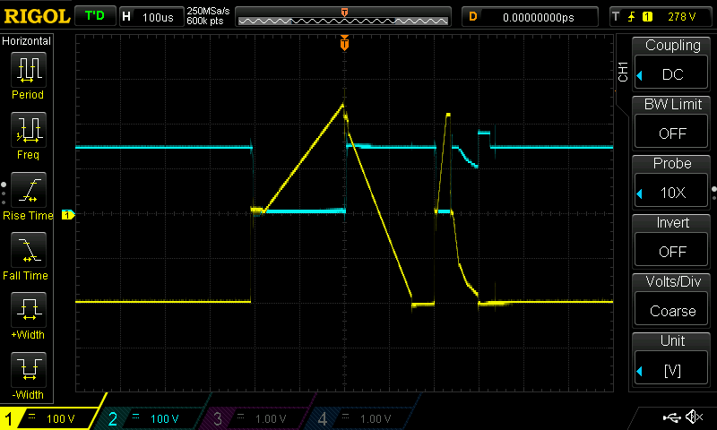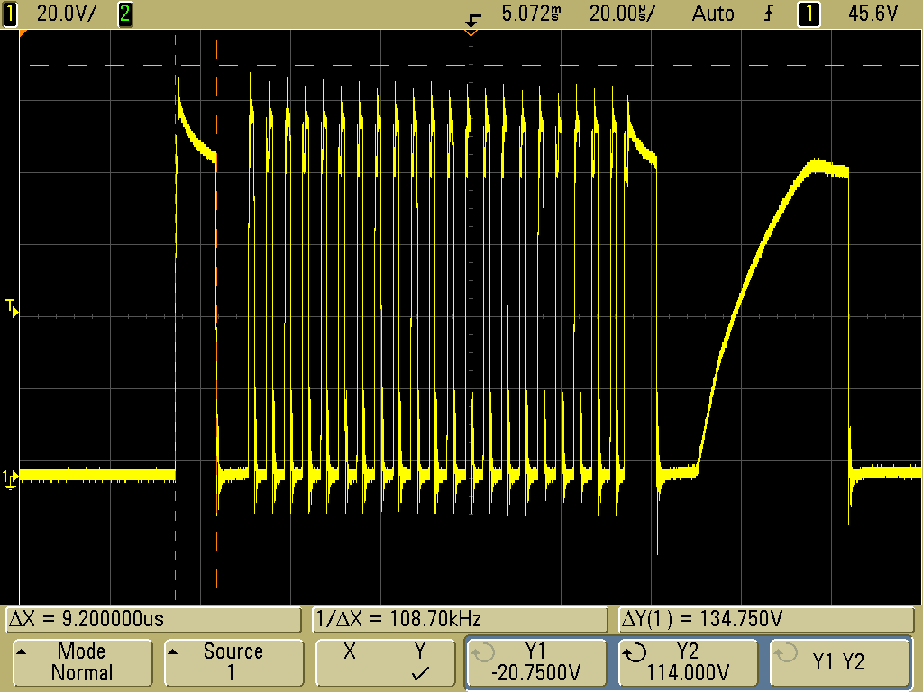 4. Y and Z/X drive: Detail of one subfield showing alternate sustain drive pulses and reset pulse at end of field