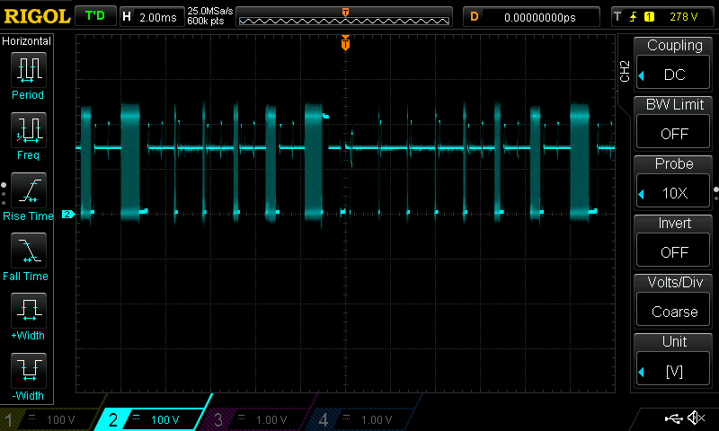 Here's some waveforms from a Panasonic G10, 2009 FHD panel, so going to be a little different, but should give you an idea, all waves 100V/div with GND at centre.
