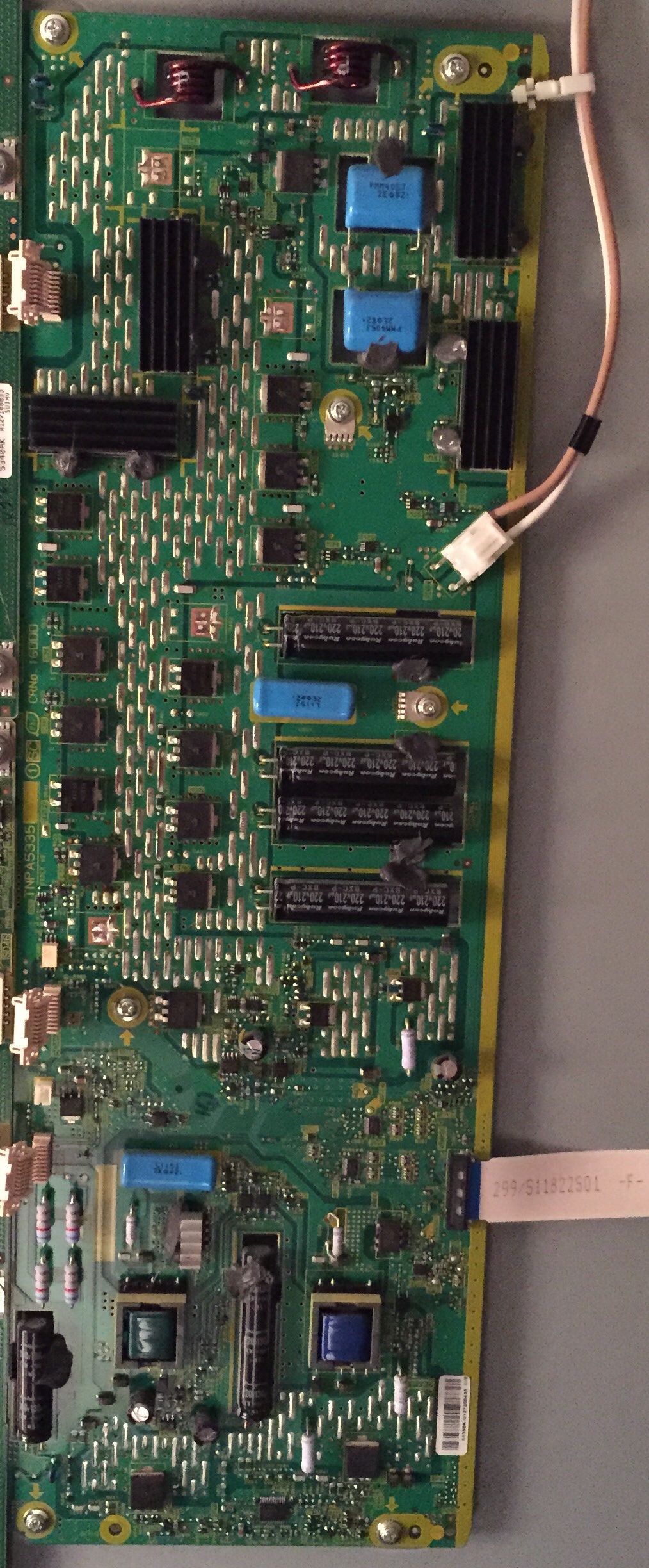 So I took the board off and cleaned it up, the back looked like it had sticky shit all over it. Yes thats how I received it, didn't notice that until I took it off this time. Yes I'm stupid and should have noticed it before hand, however after I cleaned it with some rubbing alcohol, I powered it back on and get an LED trying to light up on the SC board followed by a weird beep, then the 6 light code again. So to test to see if it was fully powered down I tried the usb ports to charge my phone, because I didn't see a light on the SS board. Didnt charge. However before powering the TV on I did see it try to connect to my phone. About to test with multimeter, give the readings in a few.