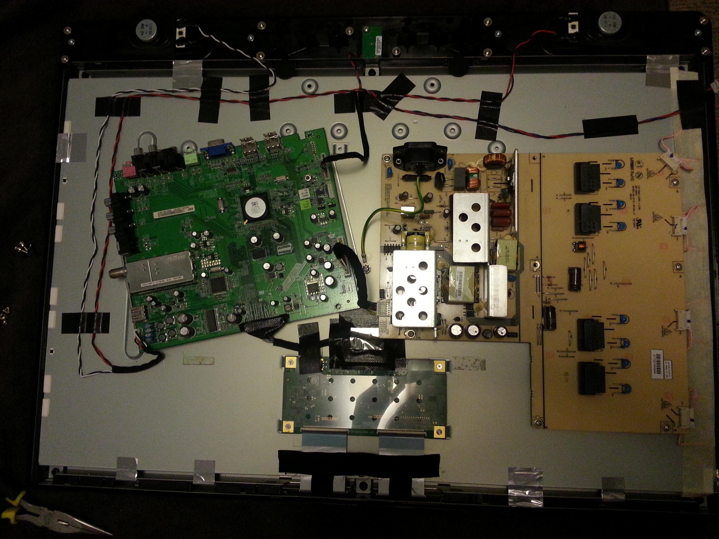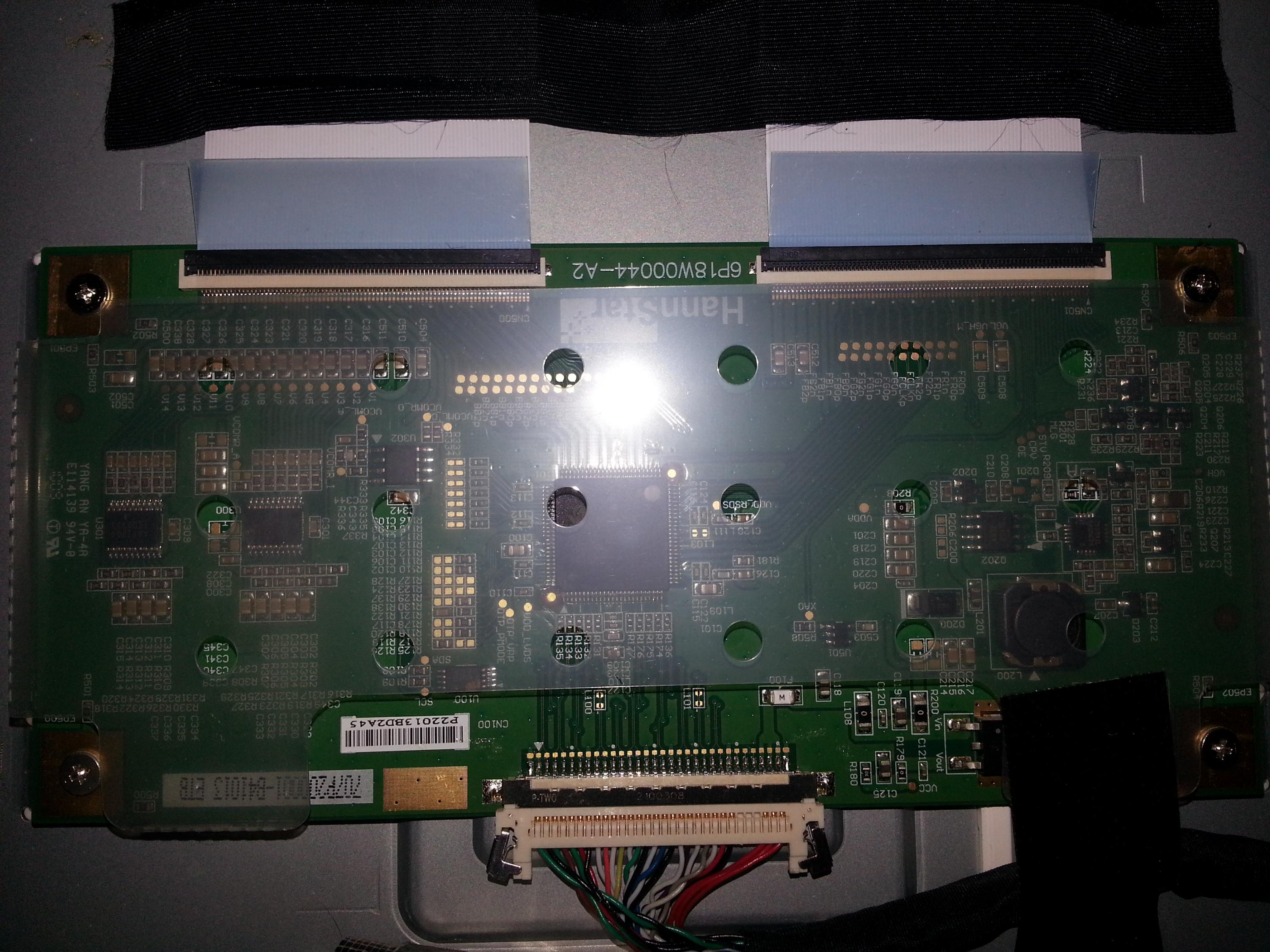 brothers, what you see in the picture is a dismantled hanspree hsg1075 28inch lcd monitor. As you can see I have removed all covers on the back. This monitor only displays white when powered on, sound works perfectly fine. No splash logo displays, just bright white. Any direction on which board is bad and needs replaced? Somewhat proficient PC tech here (not TV). No apparent damage to any boards, no loose connections.