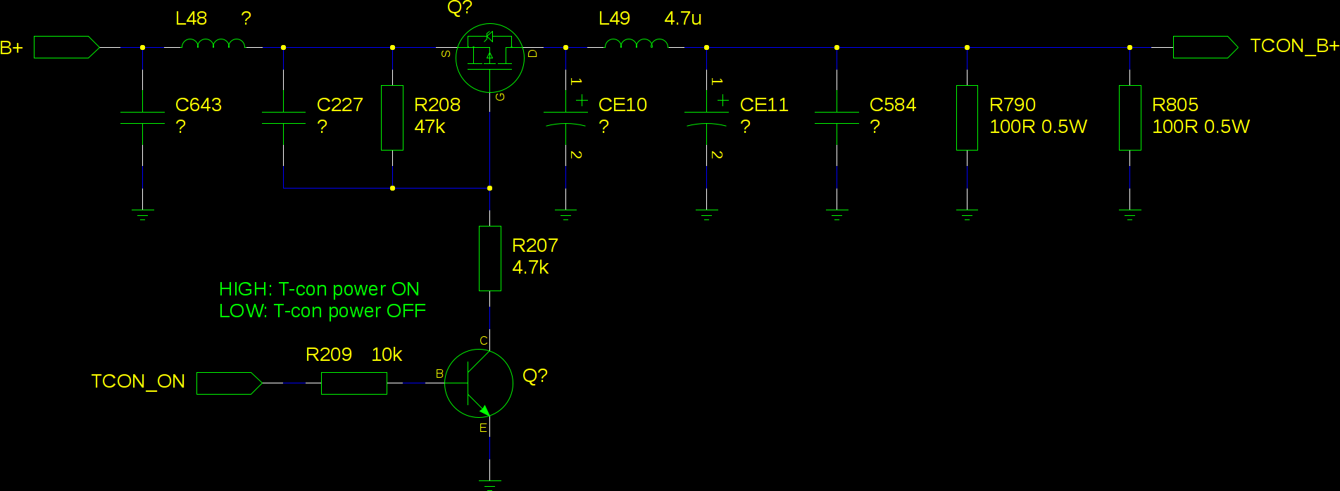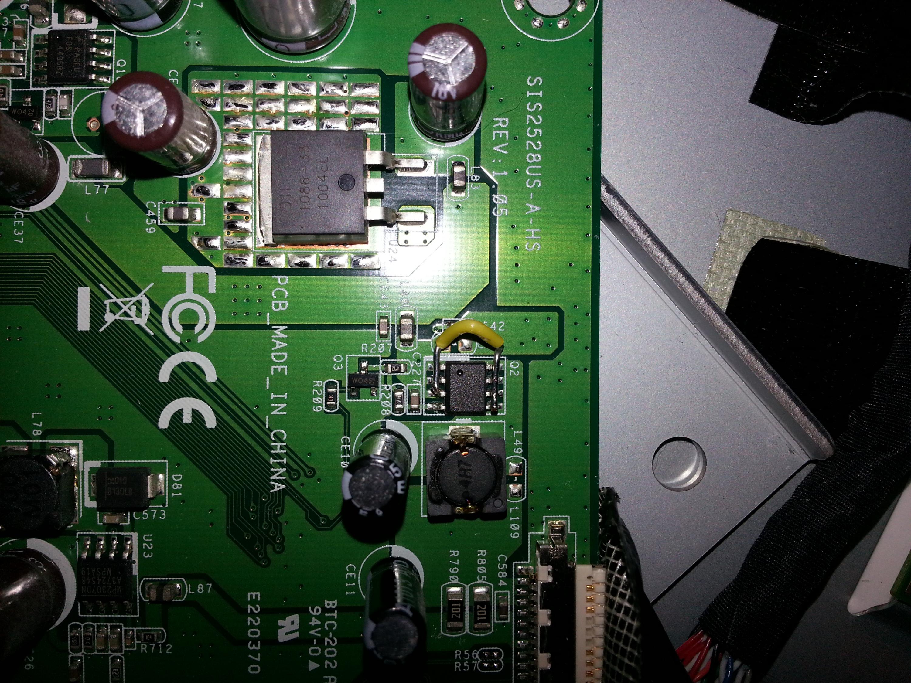 Another thing you could do is jumper across from source to drain... this will bypass the FET and leave the t-con power on always. It would use a little more power in standby, but it is still likely to work fine.