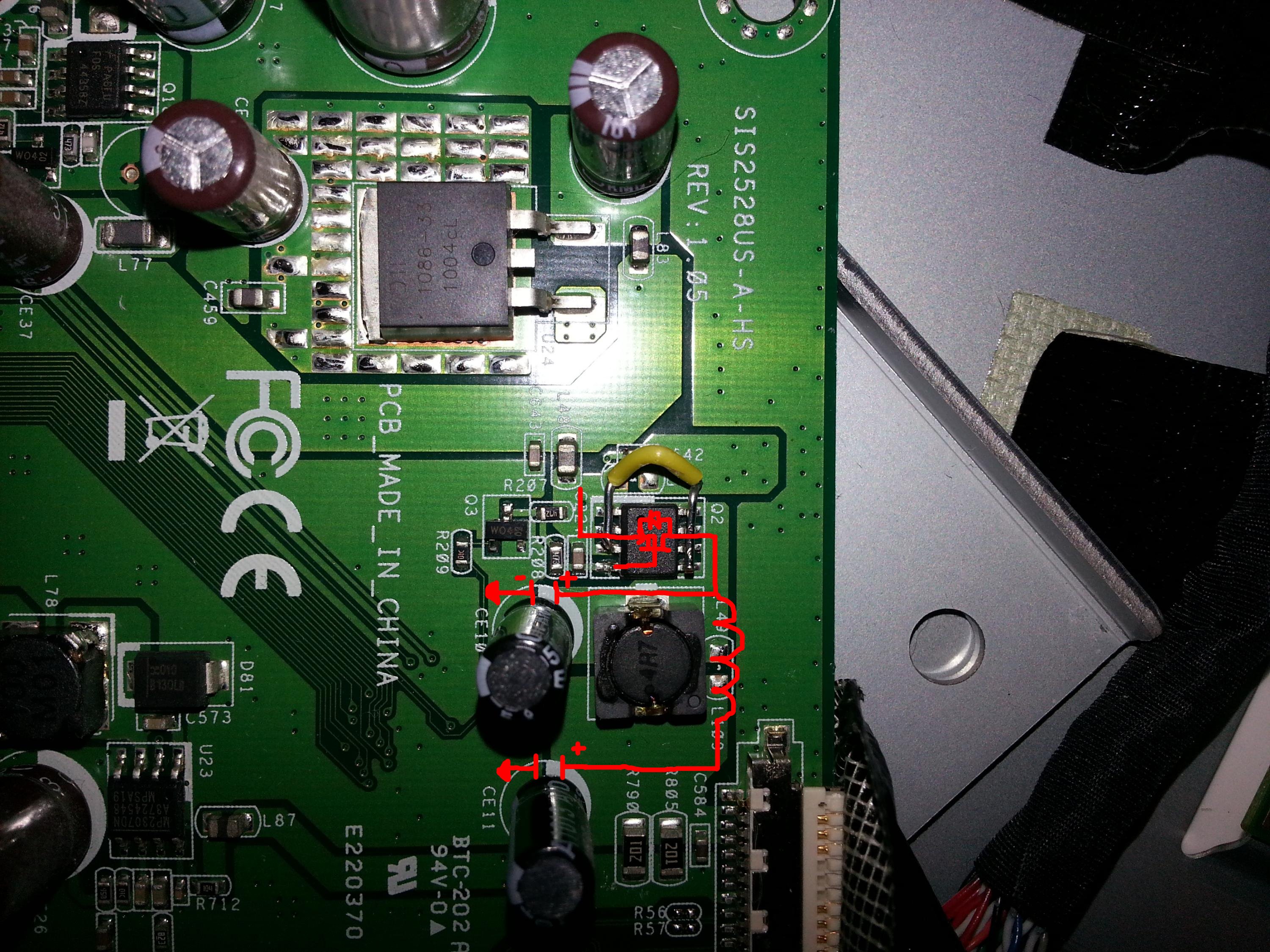tom, your suggestion about bypassing the FET, source to drain, sounds great, I am willing to attempt this but I may need a little more clarification on how to do that. you guys have been amazingly helpful, I'm very impressed by this forum.