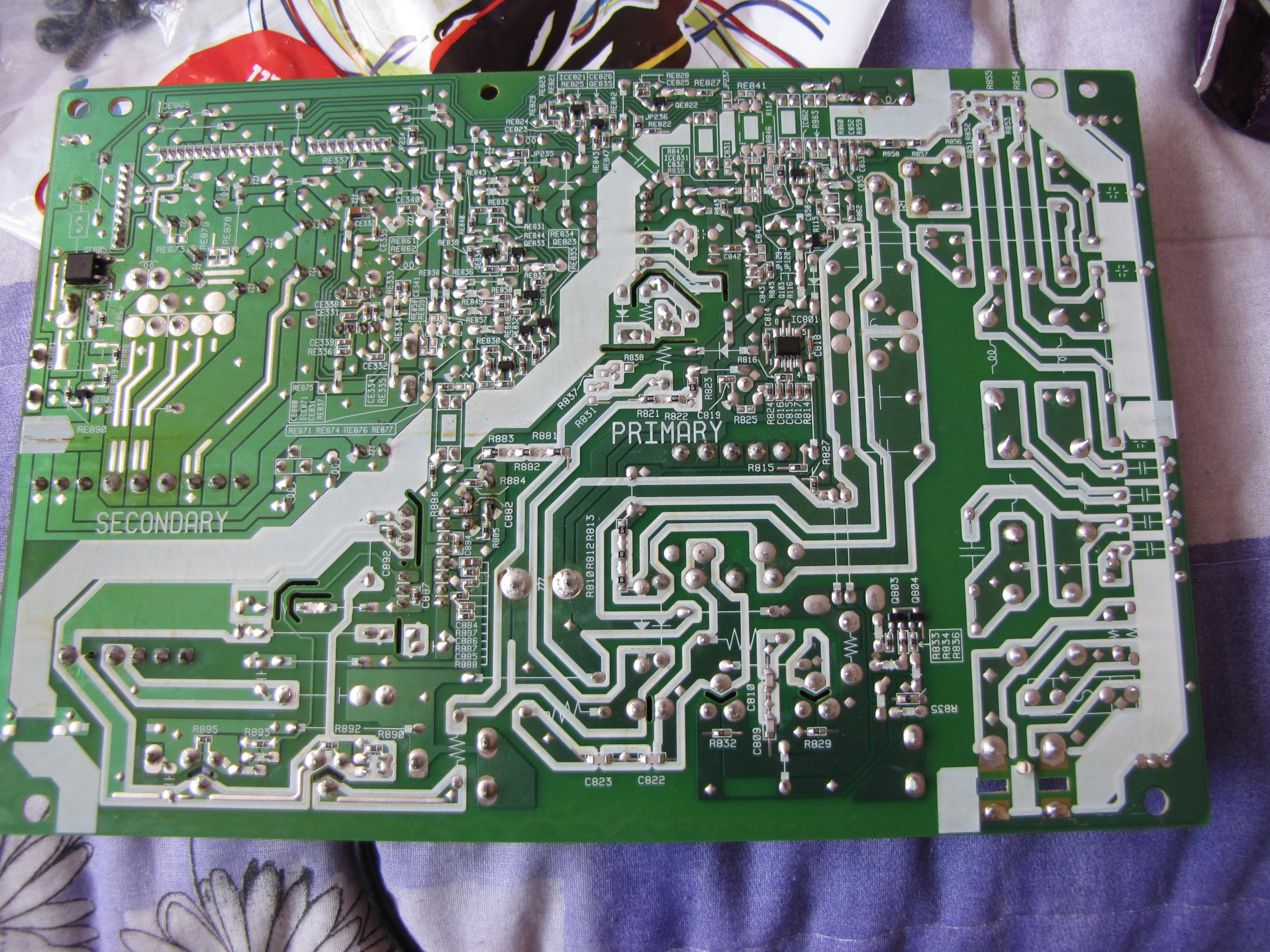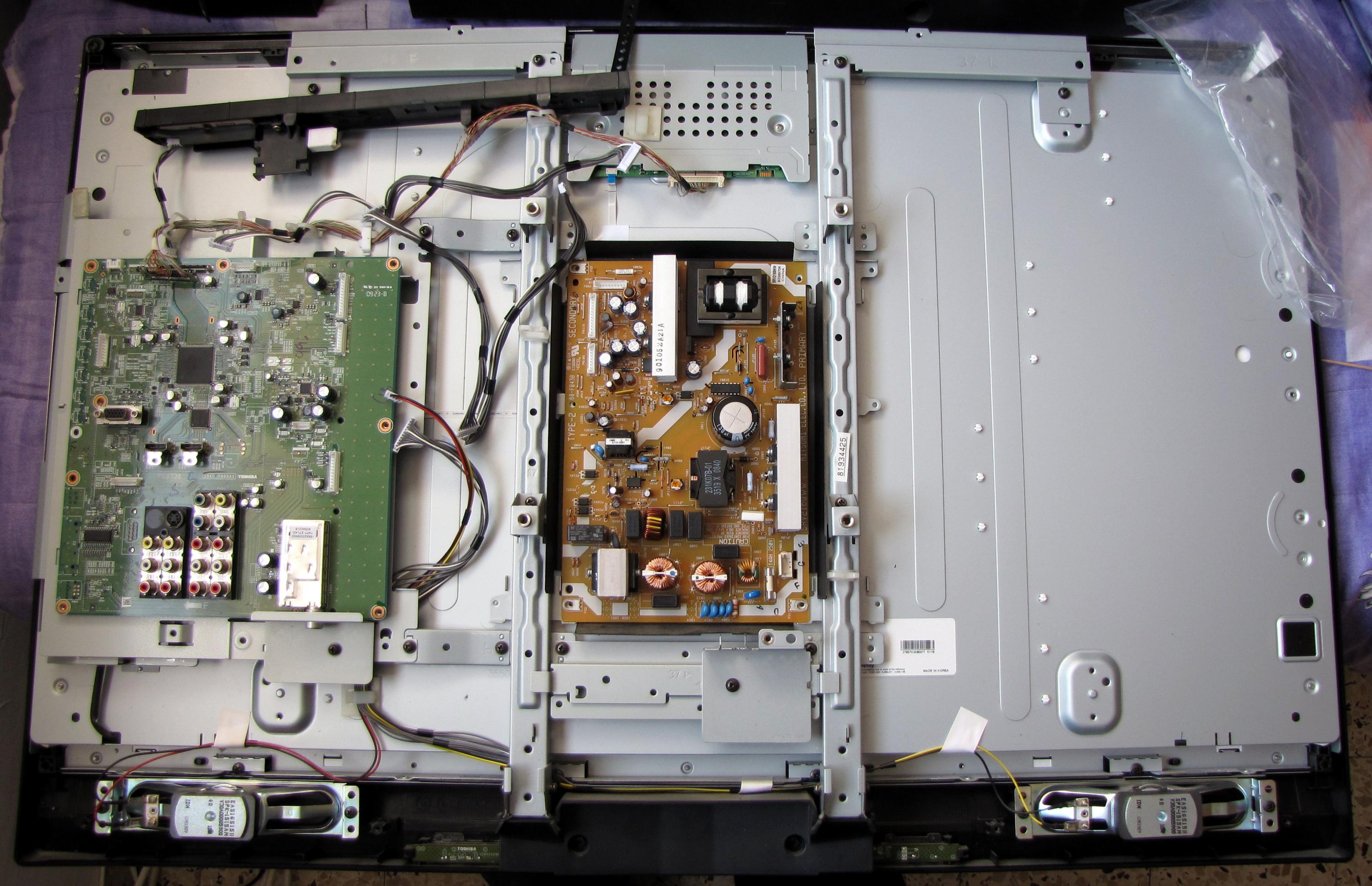 Got the TV in that state: the tv won't power on, RED led indicator lights when plugged into main. when power button pressed i hear some high pitch noises from PS and main, after a few second RED led turn off and after another couple of seconds lights RED again. There is no picture nor backlight nor nothing.