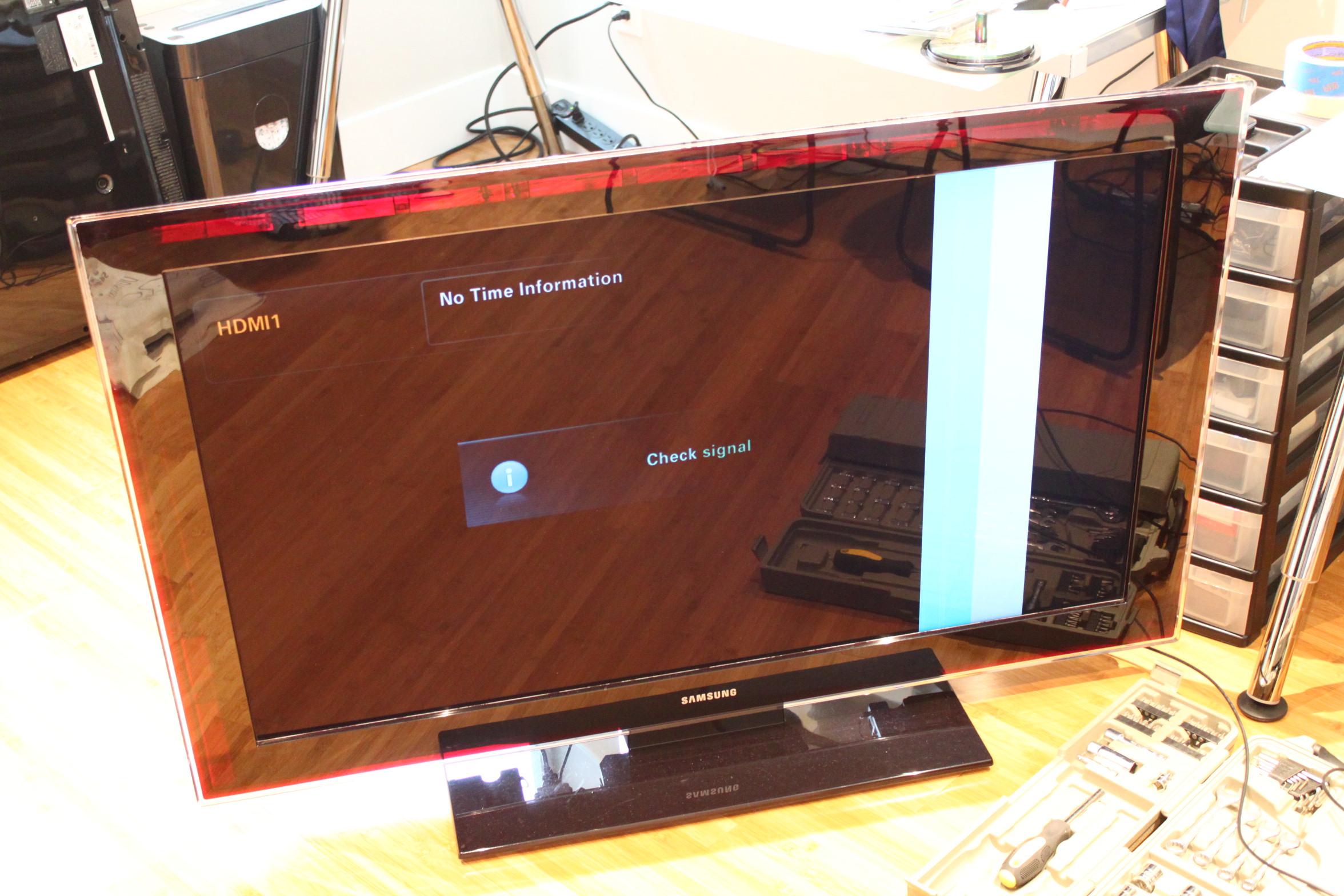Any leads as to what the problem might be? Seems like an issue on power up with all the ribbon cables attached, once one's popped out and put back in picture is fine and dandy.