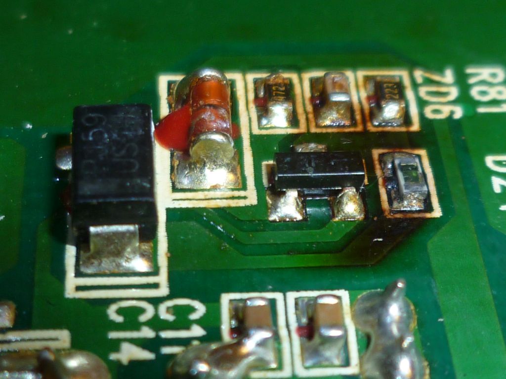 Looking underneath the board I find a rather burned looking component with damage to the surrounding PCB. Cleaned the board off with some alcohol and the photos show what was found.