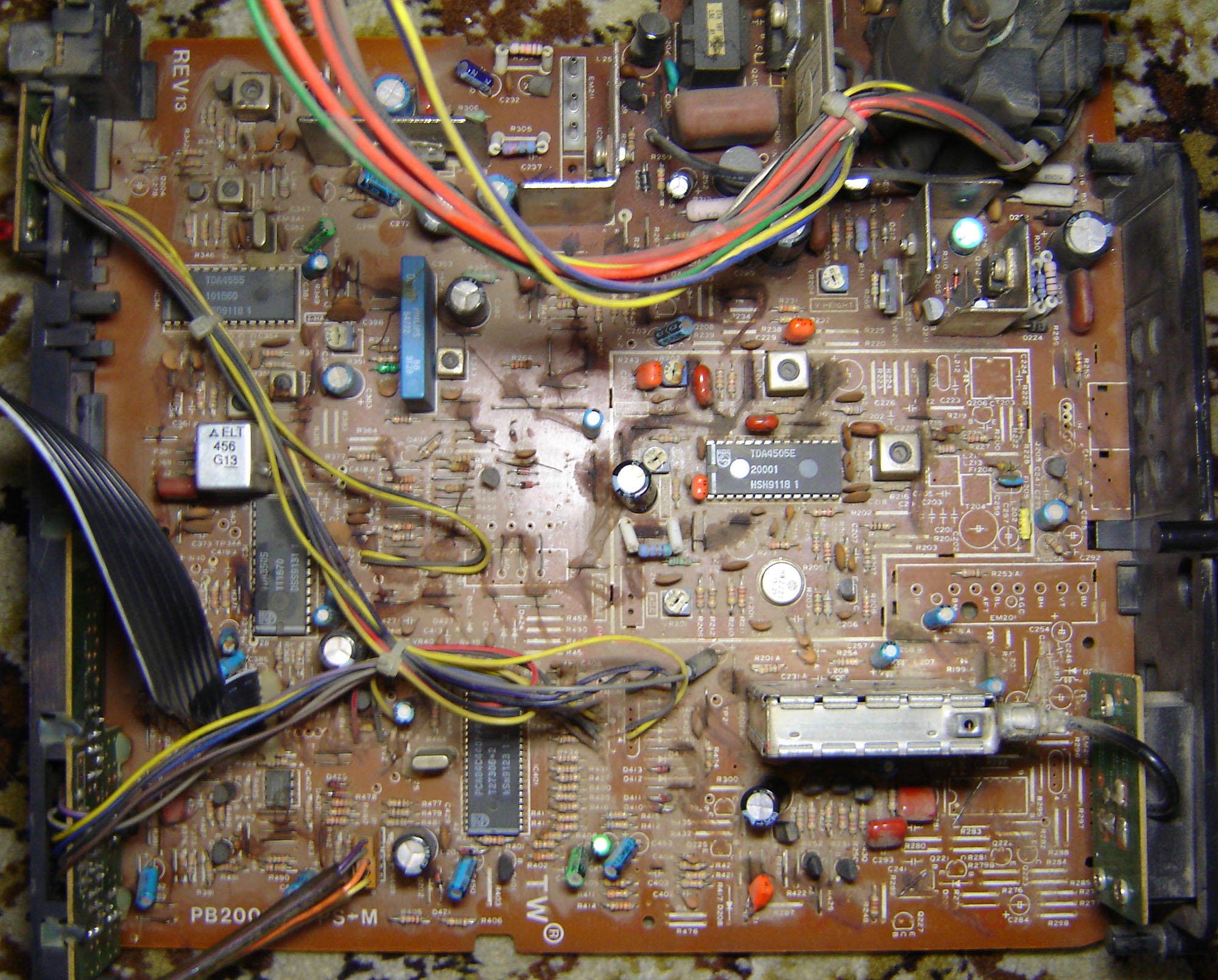 The CRT board has turned black from heat and most of its solder joints were in bad condition. I reflowed nearly all of them and several on power supply board.