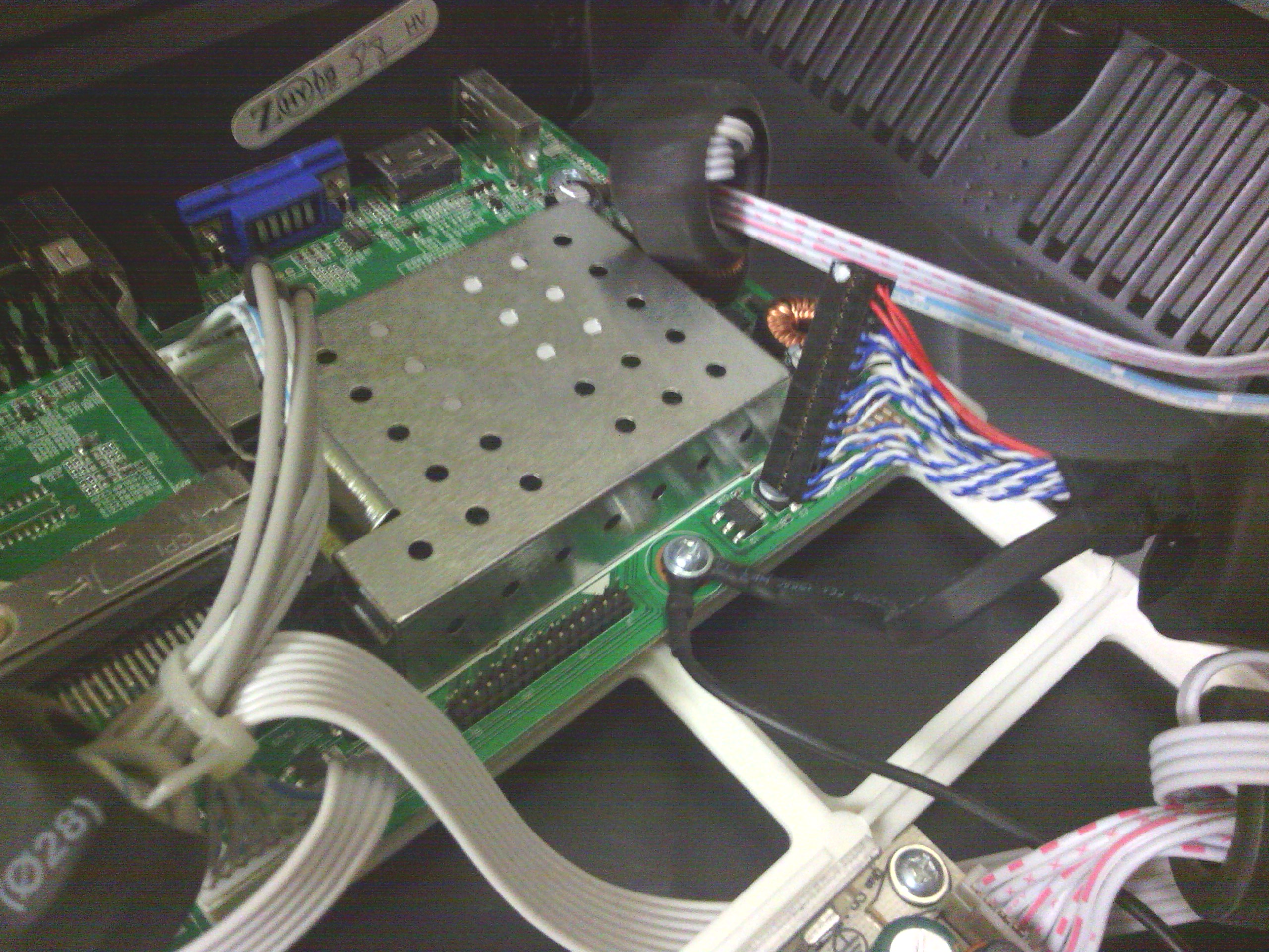 Get it home and it was obvious someone had tried opening it but not succeded, snapped screw mounts so some screws no longer screw in. I went ahead and opened it, its one where the front bezel comes off then you unscrew the screen mounts and lift the lcd panel up to reveal the boards.