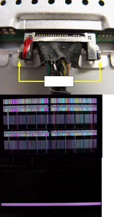 "One trick to check most TCONS for functionality is to loosen the LVDS connector at the TCON (as shown InFigure 3) while the unit is turned on. Handle the LVDS connector with care and be certain to fully release the locktabs. Gently rock the cable in and out of the connector while observing the screen for any response. Dependingon the chassis, the symptoms of the screen may be gentle white flashes, intermittent colored lines, or a screenfull of random patterns. The idea at this point is to provoke some kind of response on the screen. TCON boardsthat have failed will not usually generate any type of response on the screen."