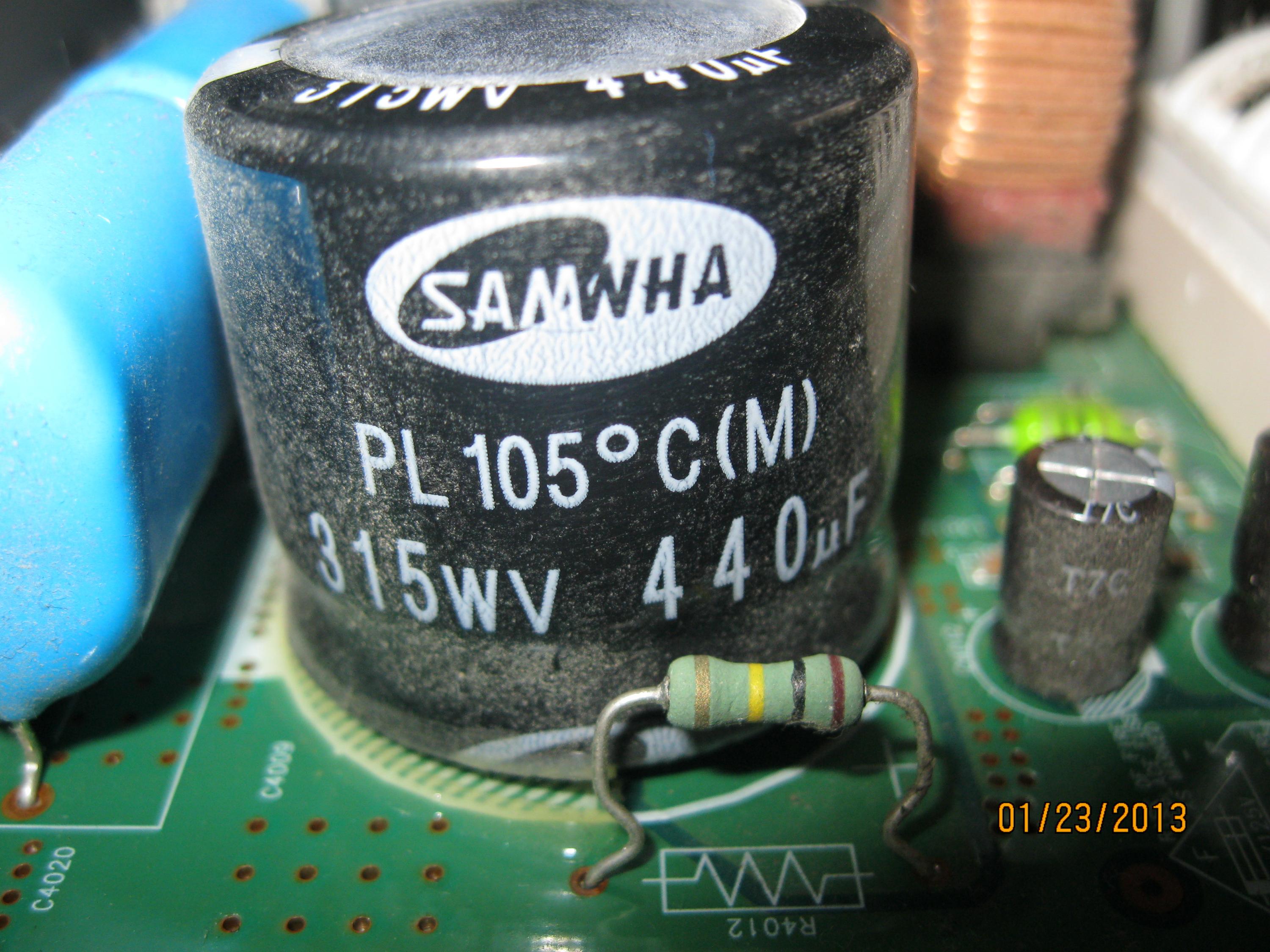 Tom no top wont press down and brown crud oozing from around one of the legs.Symptom is sparkling pixels. Have tried everywhere for cap but no luck.No one seems to have a 440uf cap at 315 or any higher. Any suggestion on locating would be appreciatedComment