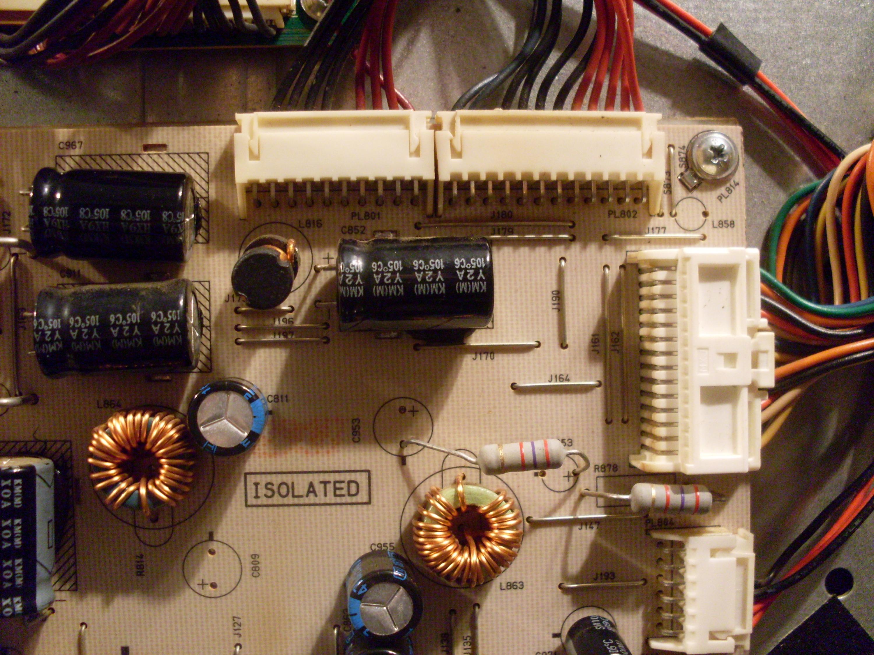 The five capos I replaced were the one just under and to the left of the ISOLATED marker on this pic http://www.lcdtvparts.co.uk/index.ph...image&pID=2103. Those 5 were bulging.