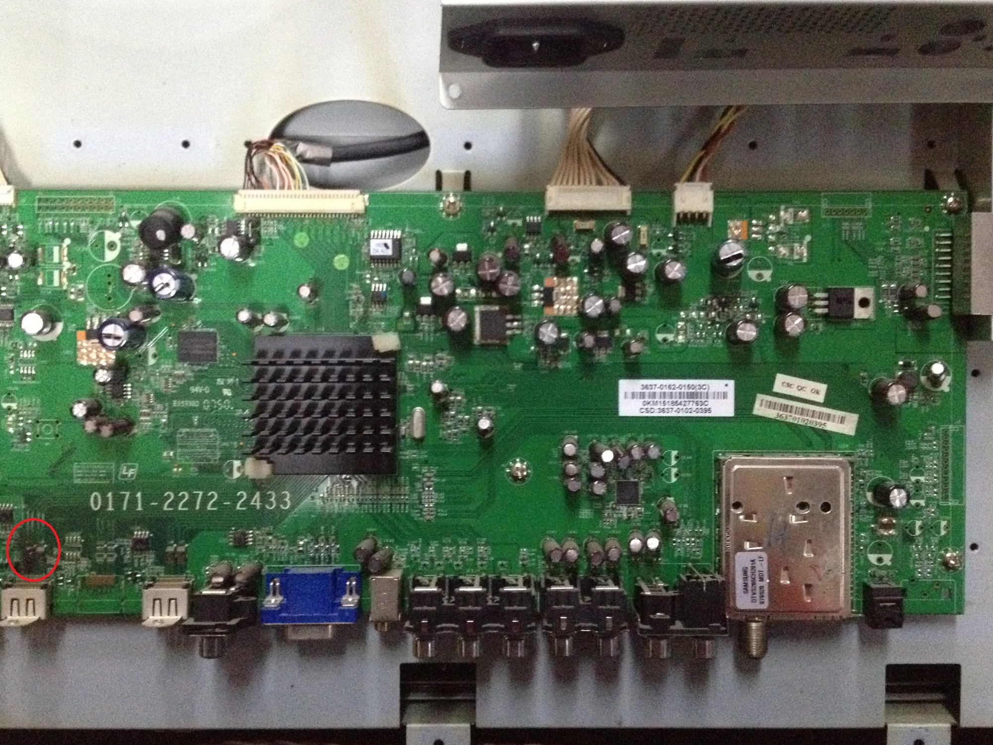I opened it up, doesn't seem to bee any bulging capacitors. I read that vizio tv's have alot of problems with voltage regulators. I'll check those on the main board later, but while looking on the main board I found this little component burnt. I don't know if I'll be able to replace that little part.