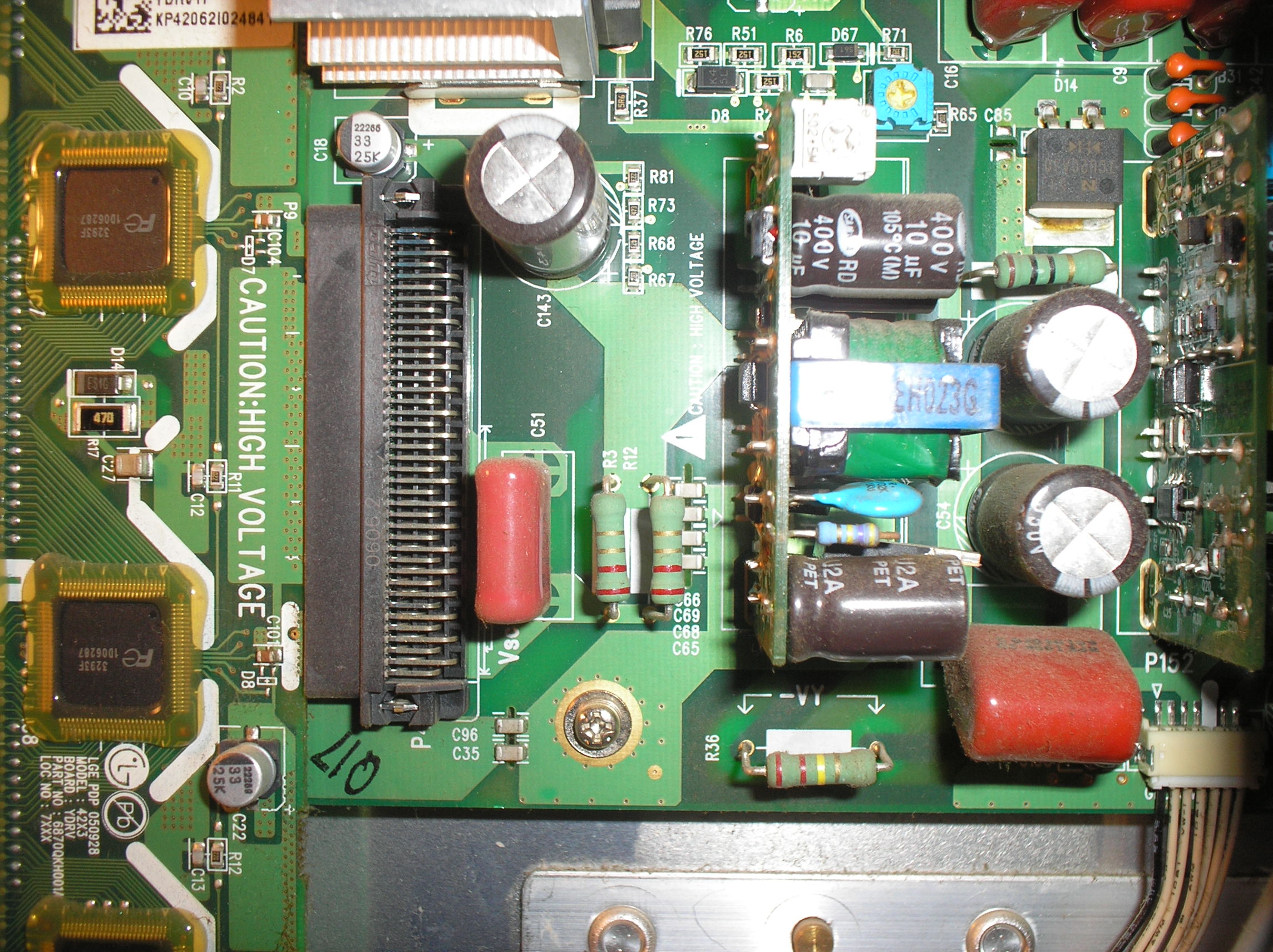 Why the No then, the set the 6709900023A came from was a LG42PC1Dv and the set it was going in is a LG42PC1D and is a higher definition so need more power(amps) to drive it, not on the Va/Vs as you would think but on the 19v supply. The boards would be a good swap the other way round though, but dont tell anyone as mine is going back on ebay and is the only one on there.So will now set about changing all the caps and checking the faulty board. Thank again to Tom for his help with this FlockoComment