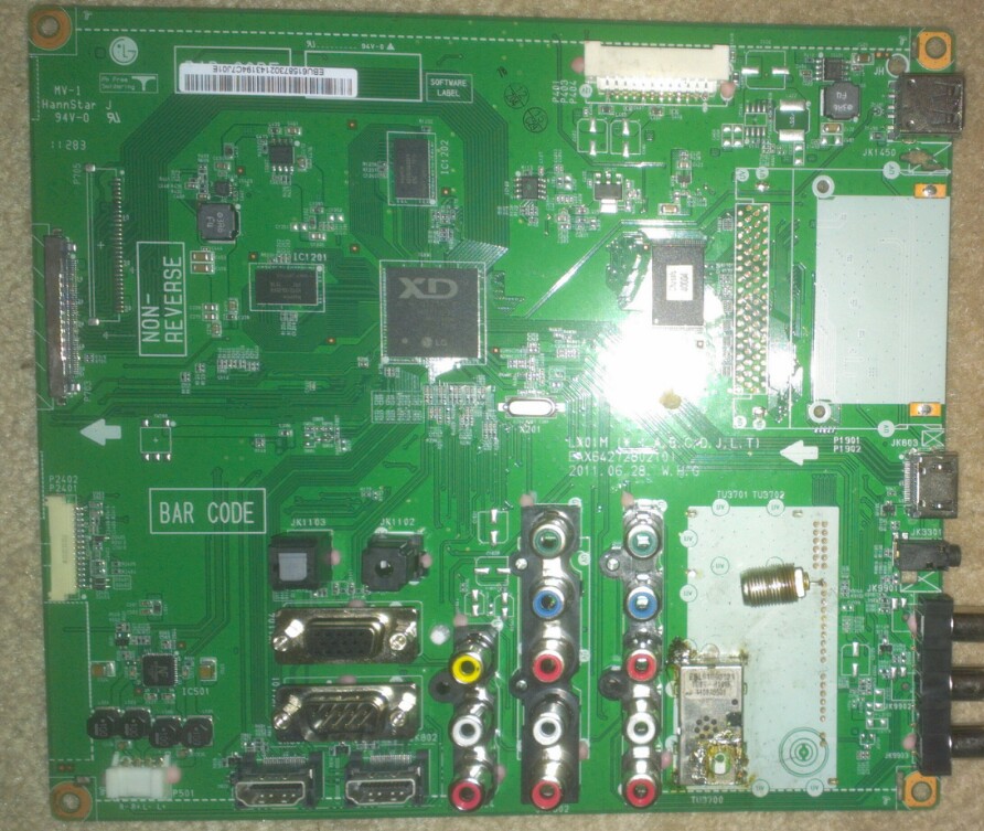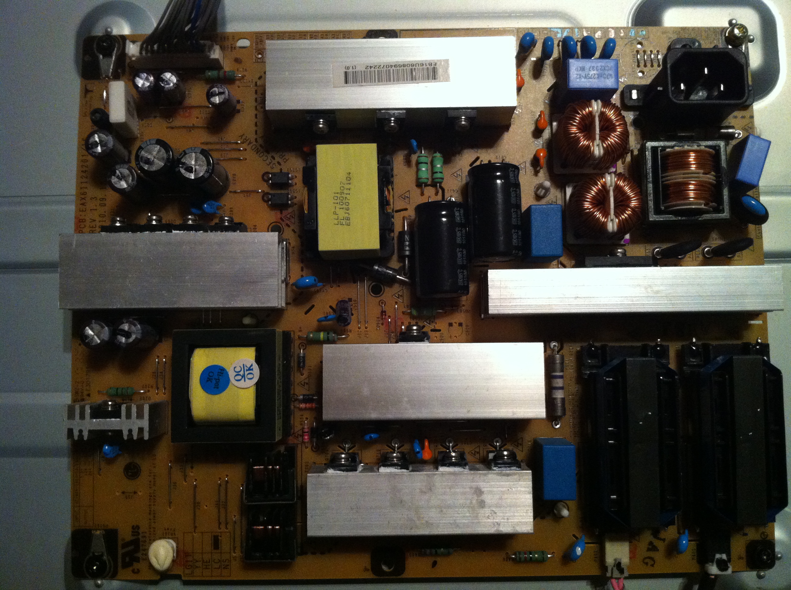 I'm new to fixing TVs. I usually just stick to computers. I have an LG 42lk450-UB. It got hit with a power surge. The red standby light comes on when plugged in and when powered on it will flash twice and then turn blue. I get no picture and no sound. The backlights do not come on at all and I cannot see a picture when shining a light on the screen. I checked the caps with an ESR meter and they are fine. The two large caps (82uf 450v) are bigger than what I normally deal with so I don't know the specs on them. I got a .22 on the ESR and in standby 168v and powered on 388v. I checked both fuses on the power board and the one on the t-con board. I measured all the voltages at the connection between the power board and the main board.