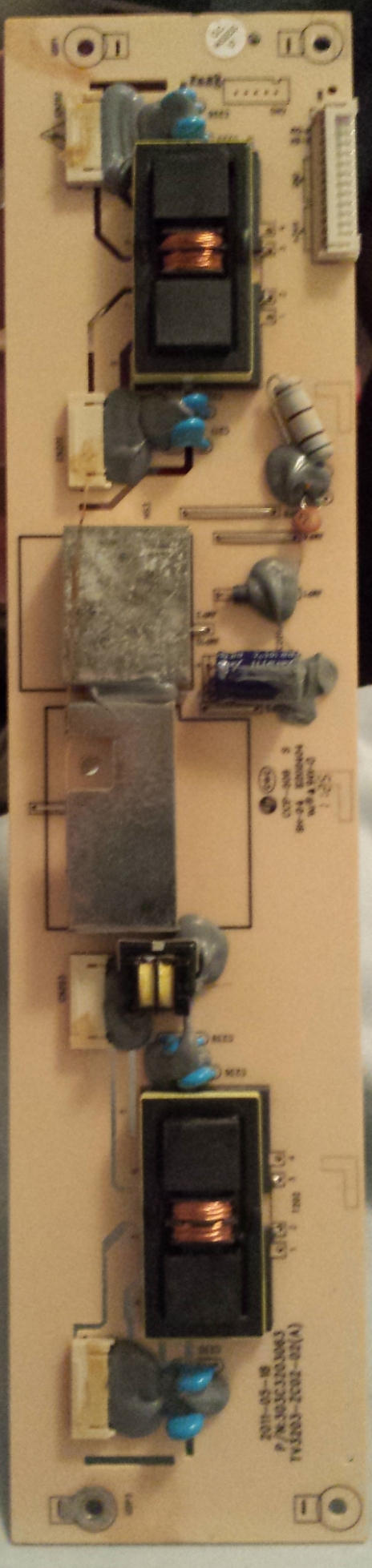 OK I put the board back in and reconnected everything. I have the correct voltages on all the terminals. I guess that brings it to either the inverter board or a bad ccfl. I took the screen out and looked at the ccfls. Here is a pic of them when I power on. They don't fully light and go out in about 1 second. I also hear a slight humming sound.Leave a comment: