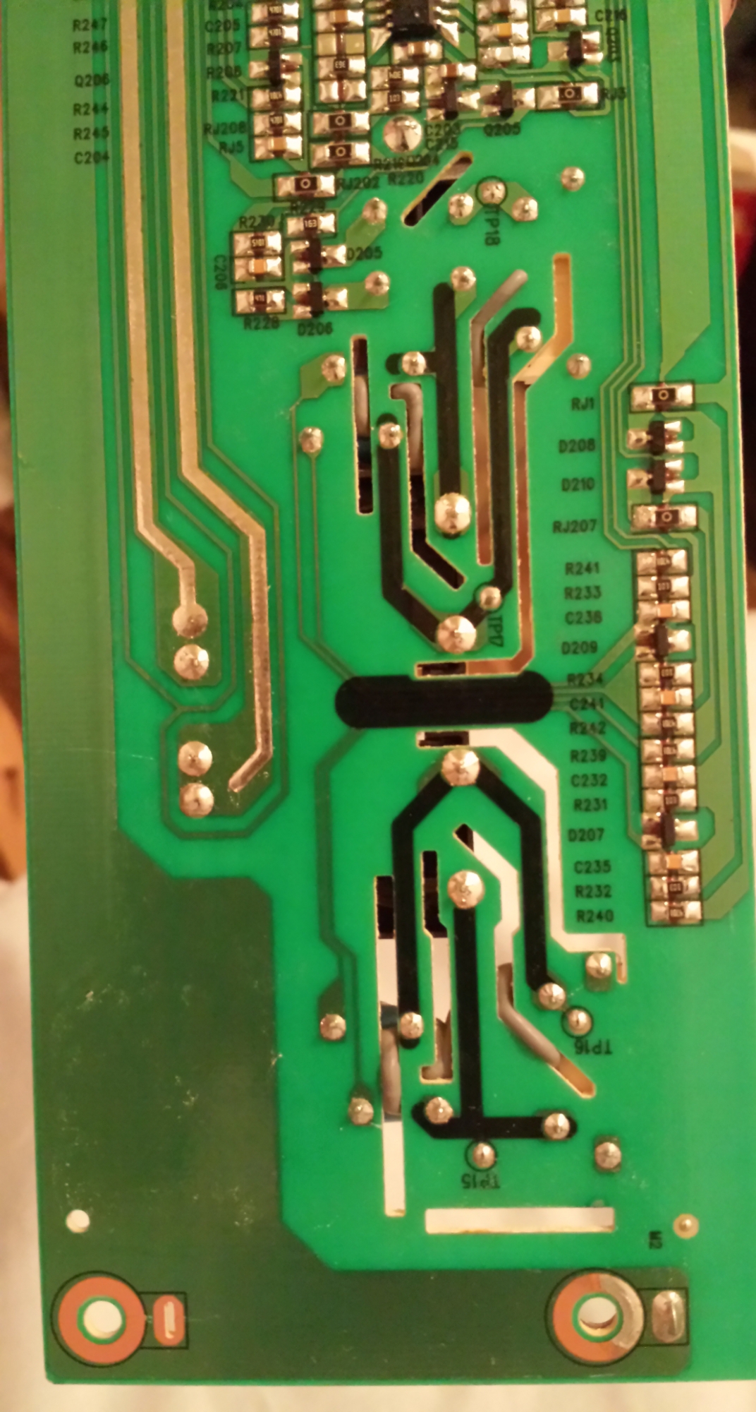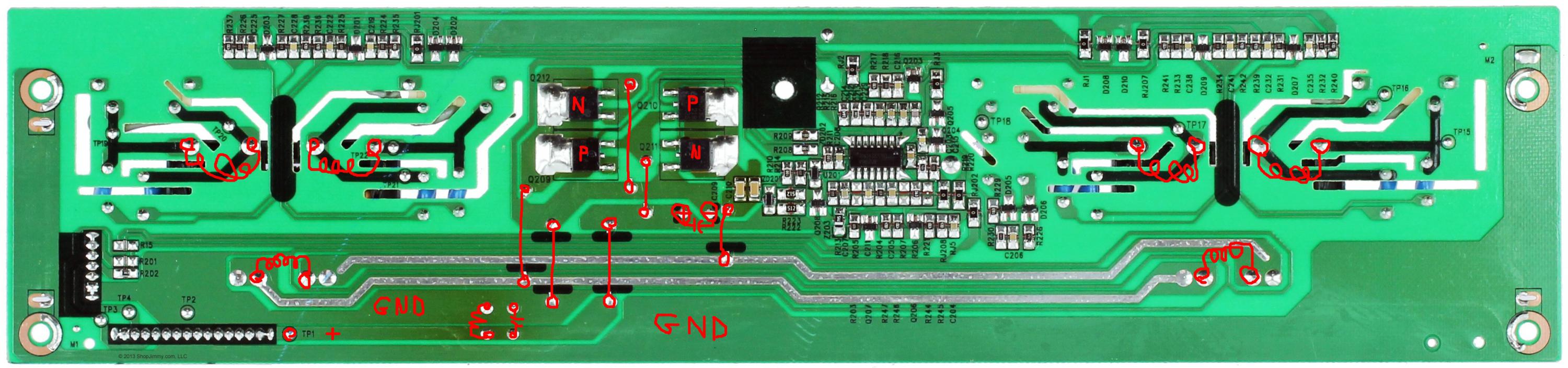 This is the simplified diagram, you should take the resistance reading between the Source and Drain pins of the 4 MOSFETs. C209, 210 should be check for resistance leakage and value (I do not know what the value is).Leave a comment:
