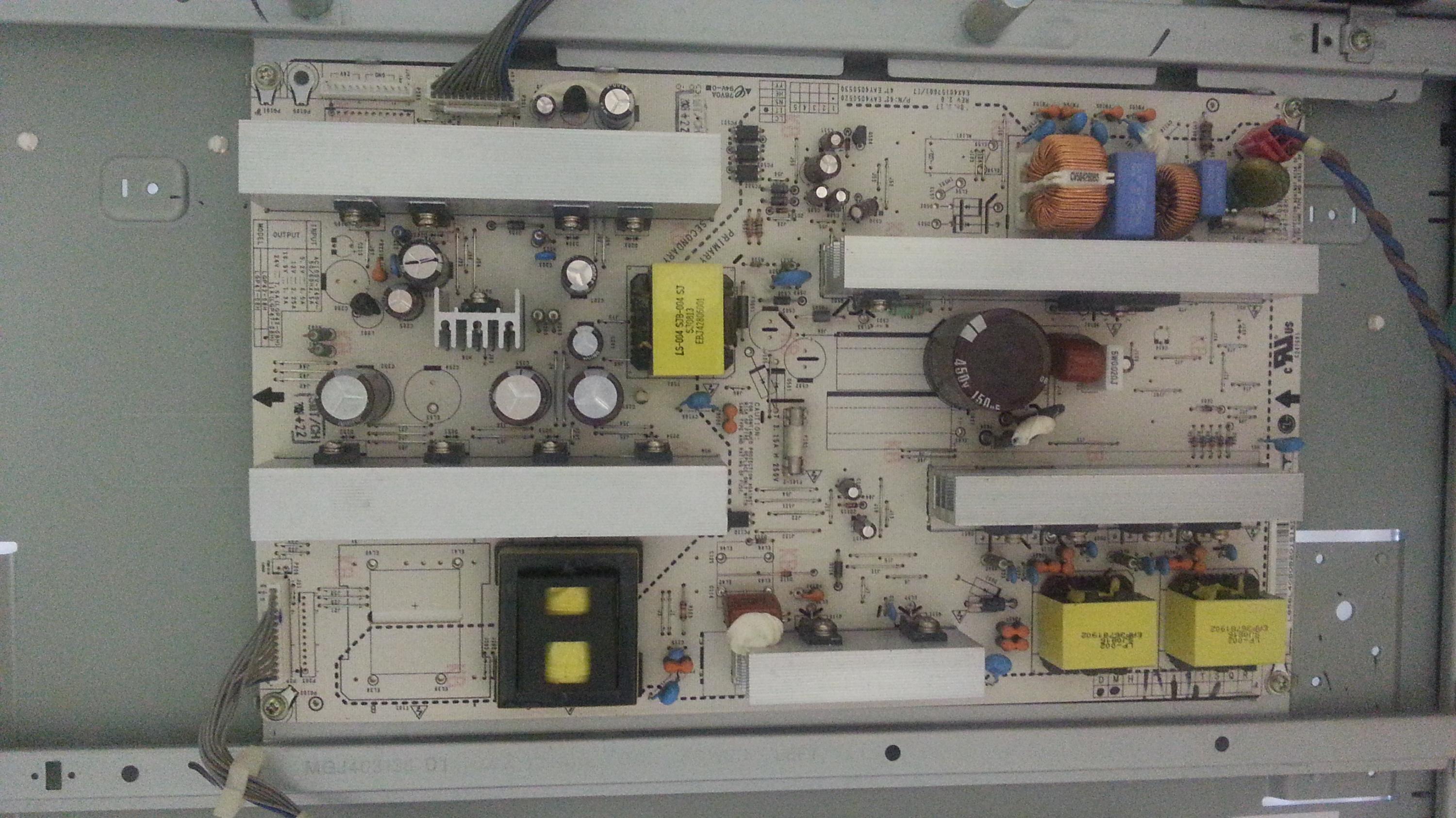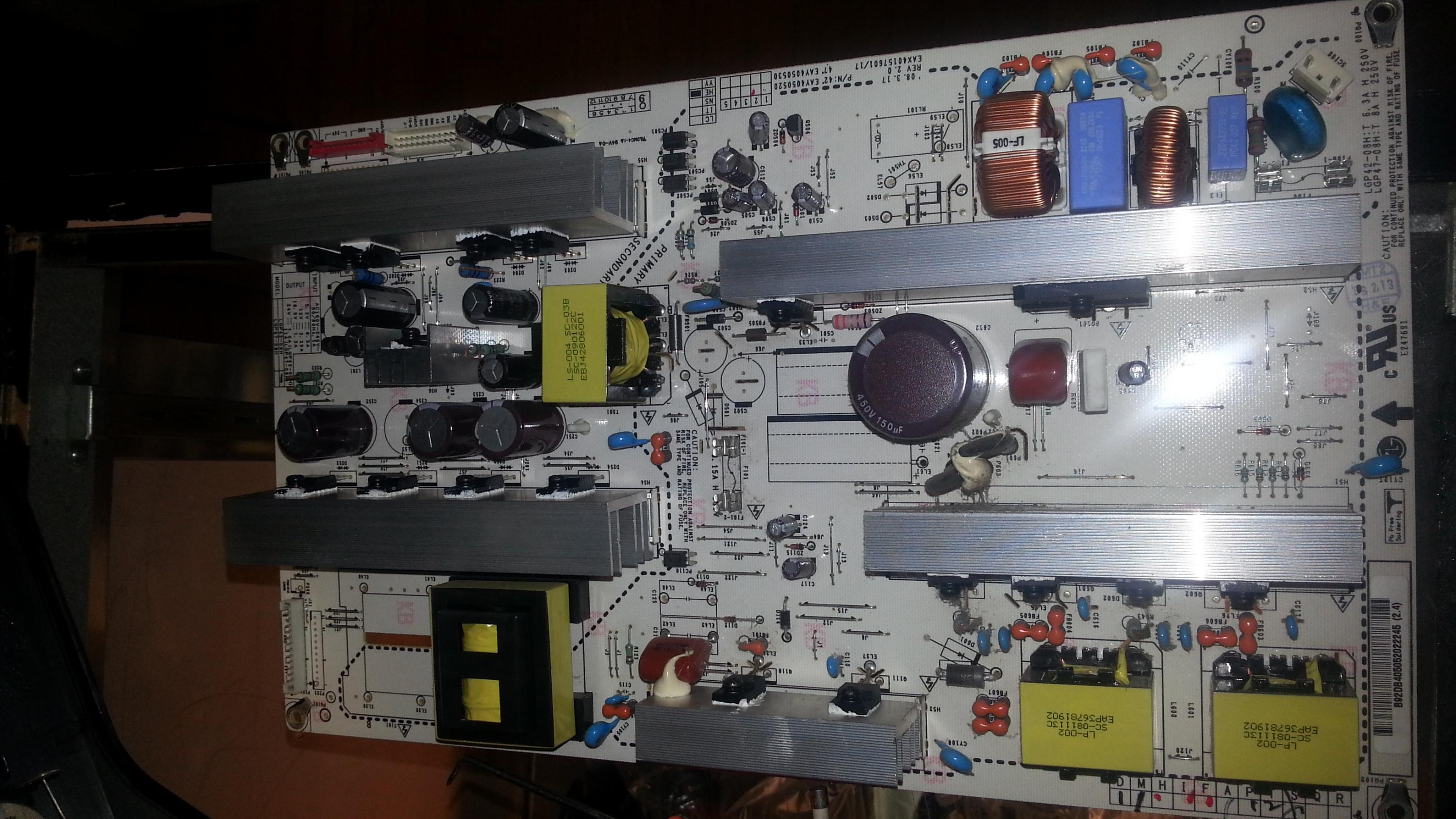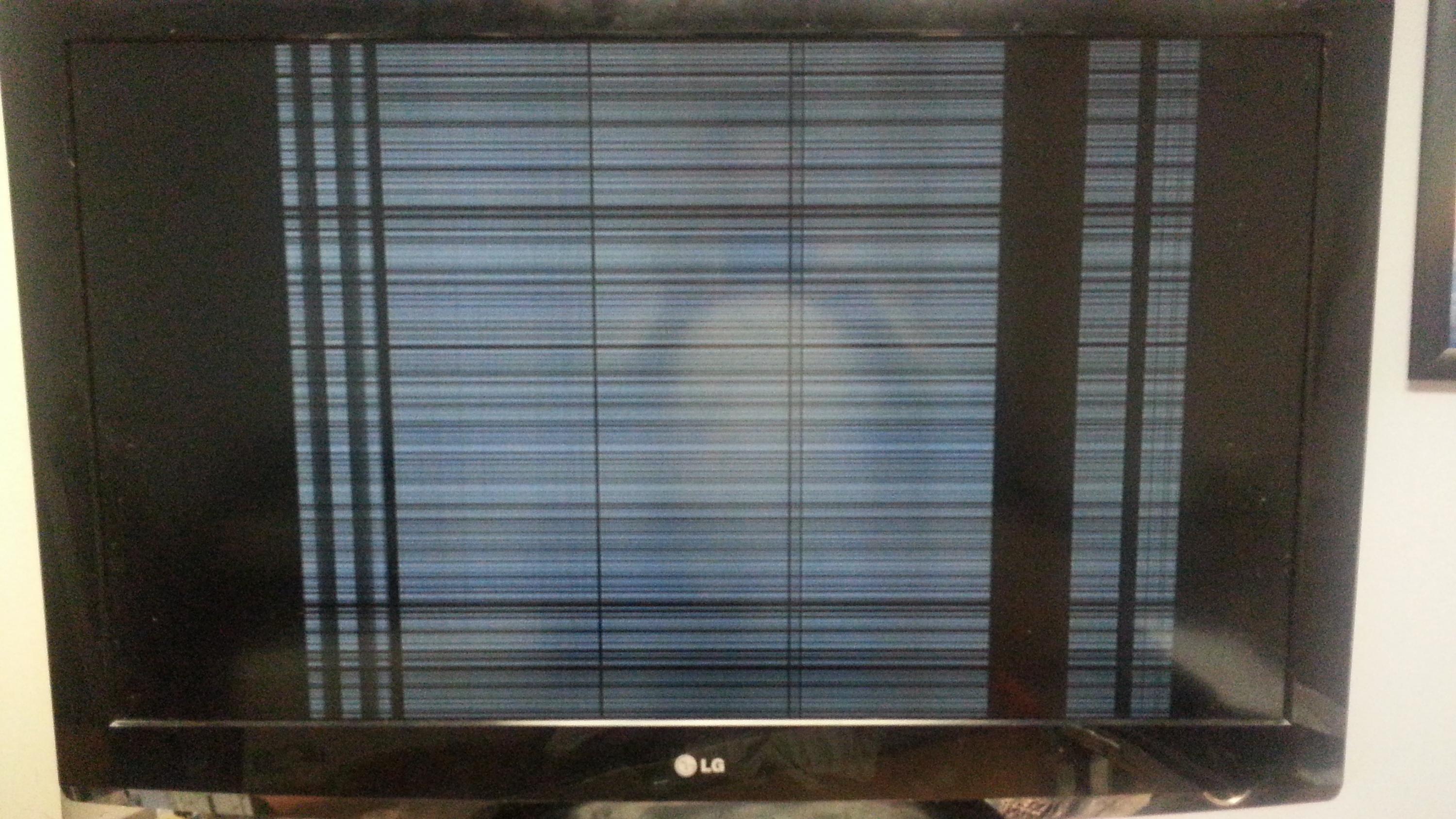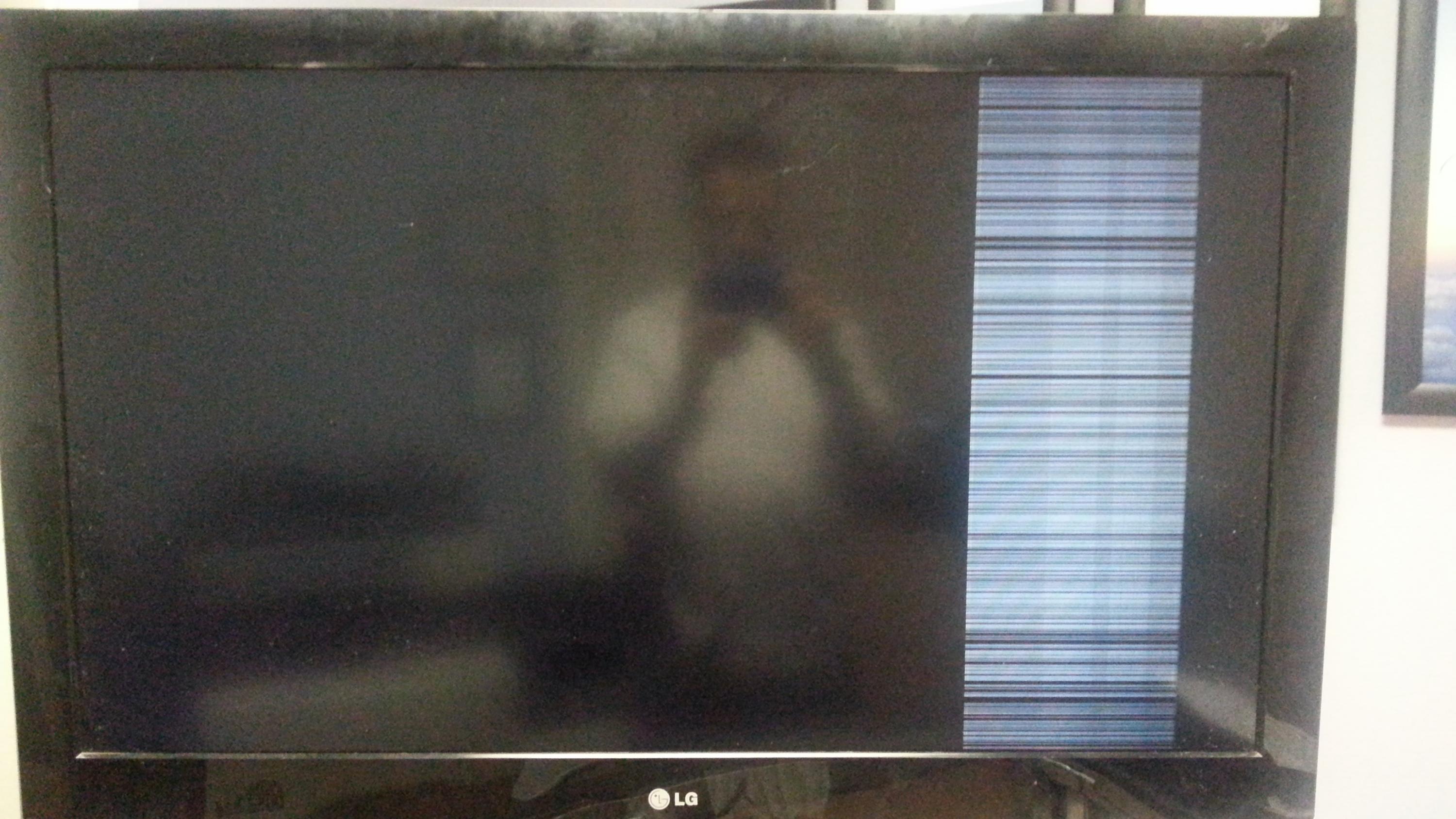 I have an LG here that had a power supply issue. I changed the power supply and made sure it was the correct part number on the board and correct revision number as well. Now that I'm getting power to the unit, I have these lines on the screen. Not sure exactly what's causing it, but they typically hang out on the right side of the screen, unless I press the menu button; then you will see lines generally across the whole of the display.