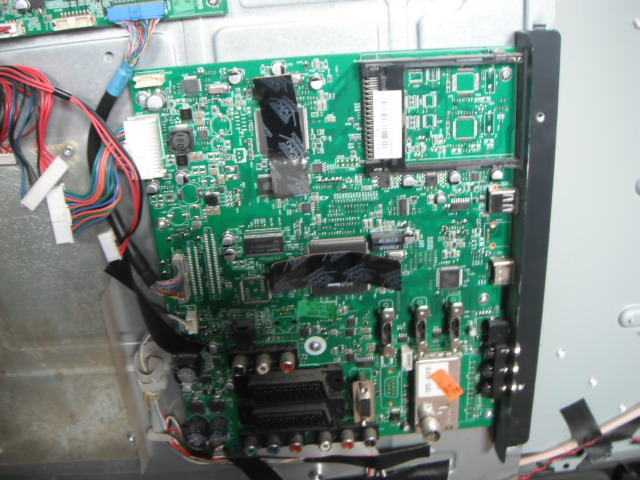 and the voltages accross the brown caps one reads 24v and the other only 5v the t.v slips back into standby, the caps look like they have been changed before lots of flux resin and moody solder joints.