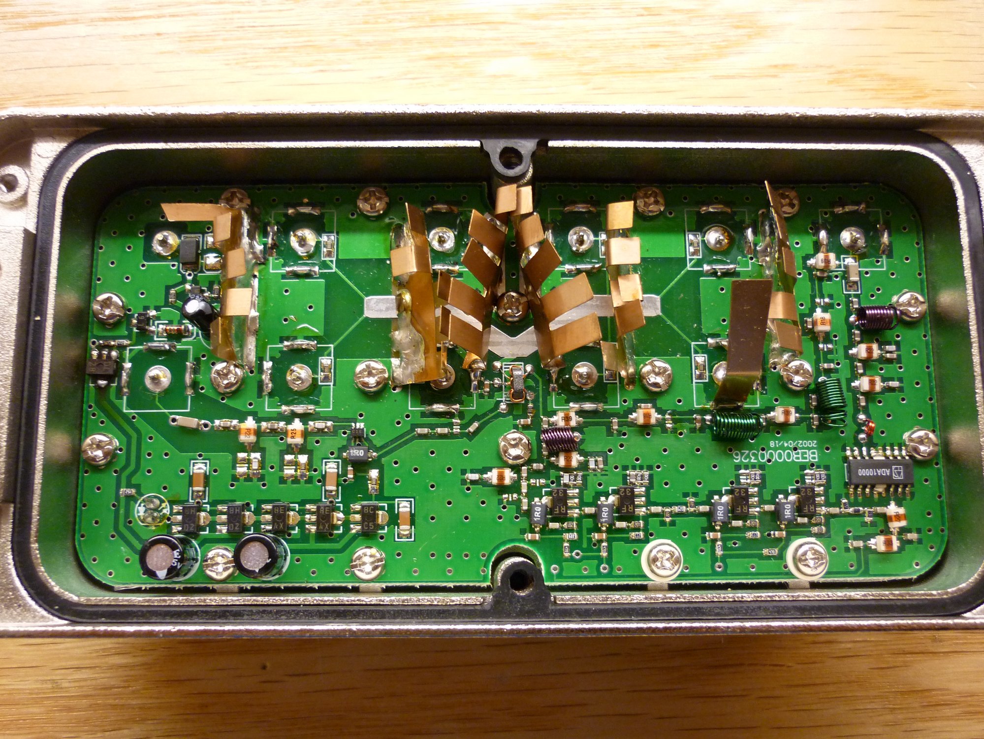 My whole house video amp has conked out. It works for a while then quits. When it does the LED goes out. So I opened it up to see what I can see. There are three 'STONE' brand 'lytics (2x 100uf and 1x 10uf). They are a bad brand but read ok with a capacitance meter. I would just shotgun some new ones but It seems this board won't come out without un-soldering all of the connectors (I removed all the screws but it wasn't budging.
