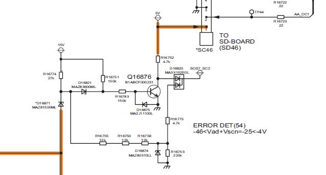 Back to this tv. Yes The sc board is outputting a high but isolated that circuit from the a board. If there comes a short it will damage the ps most likely.Did I leave the soldering iron on?Comment
