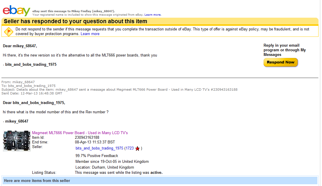 its one of them £30.00 is not bad just make sure you can return it if faulty also has your board got a sticker on of the full model number as some of them have a rev 1/2/3 etc number after it which could mean it may not work in your set.
