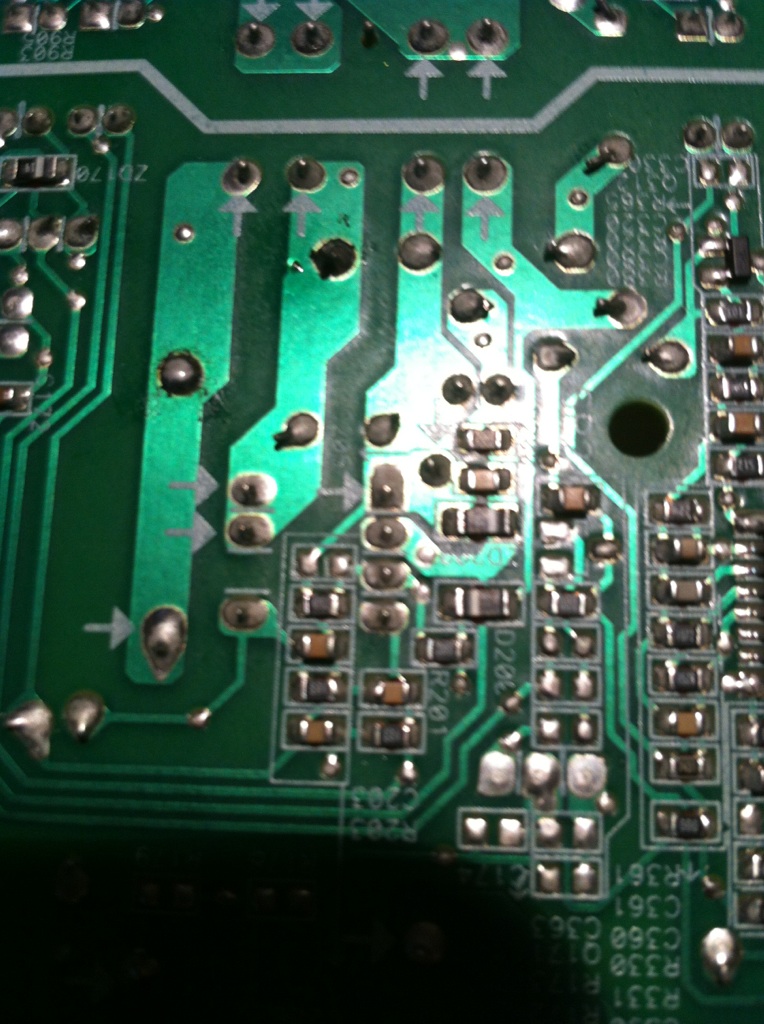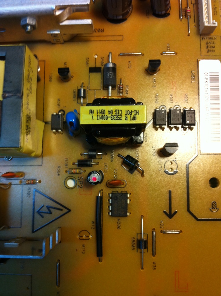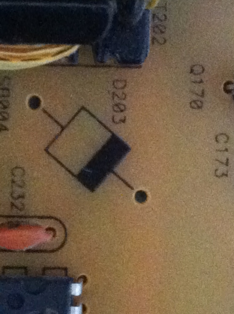 This is on the power supply/backlight inverter board EAY57681601 for LG 47LH40-UA television. The supply failed when commanded from standby to run, taking out the main fuse. I'm trying to identify diode D601 in the inverter section where the package was blown apart and the markings are gone. Q601 and Q602 will need to be replaced also. If anyone can point me to a schematic that would be most helpful. Also would like to hear if anyone has repaired this type of failure before.