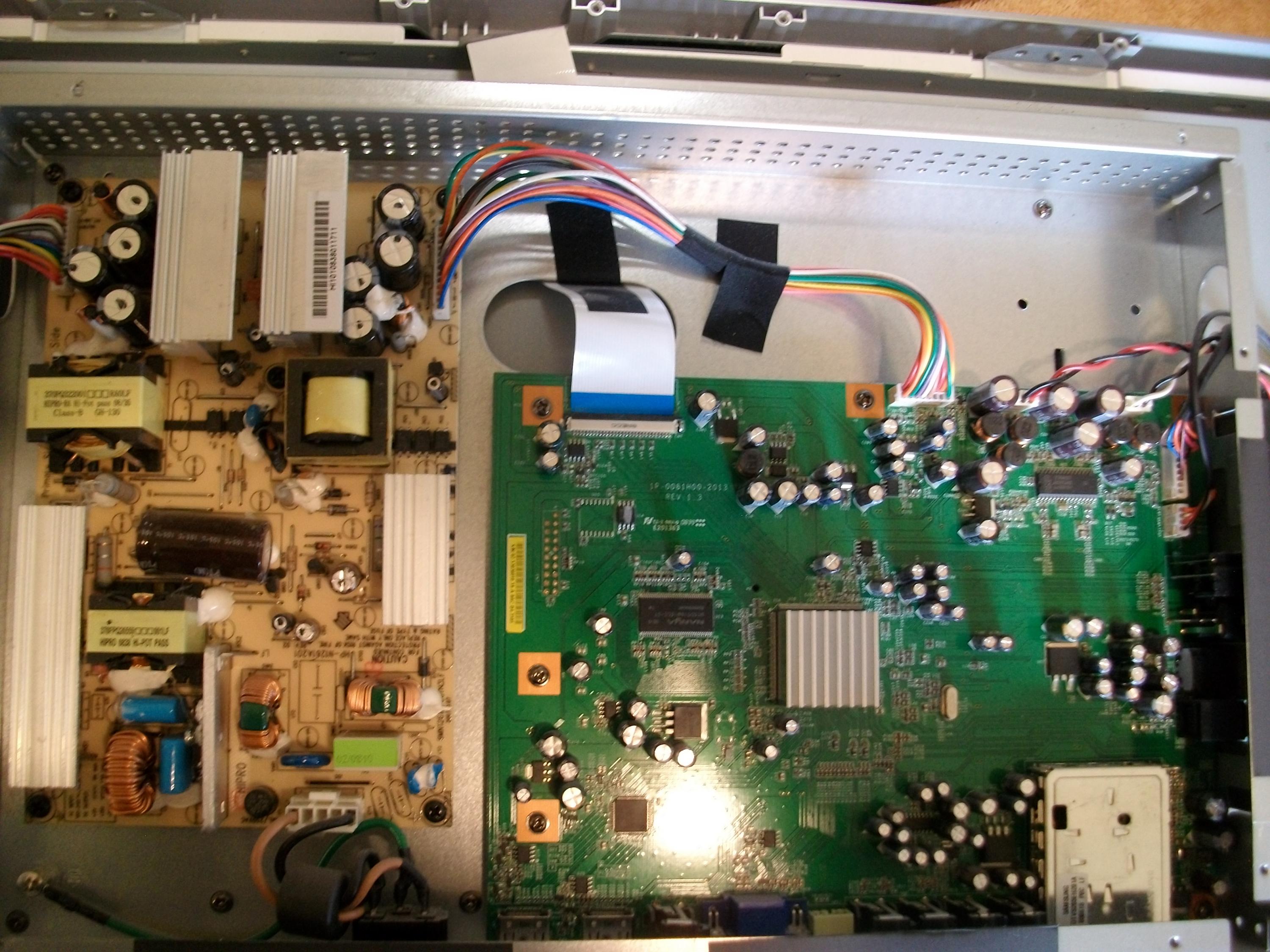 Picked up a Vizio VW26L today. Tv powers on but has a white flickering screen. no picture and no sound. I have disconnected the T-con ribbon and and powered on the tv same results flickering screen. any idea's guys. Thanks for the help Also volts were o.k on big cab 163.2v and have 5v and 14v. Will post pictures