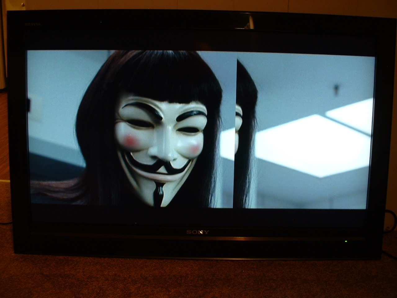 The picture quality within this vertical band seems fine, but seems to be out of time or sync with the rest of the picture and thus produces two images. Not a ghost image as it is generally known, but two distinct, sharp, and clear images to describe it as best as I can. There is also a fine horizontal line at the extreme top right of the display that goes from the right edge of this vertical band to the outer edge of the display, but this is not nearly as annoying as the vertical band, and if I have to live with this, I will.