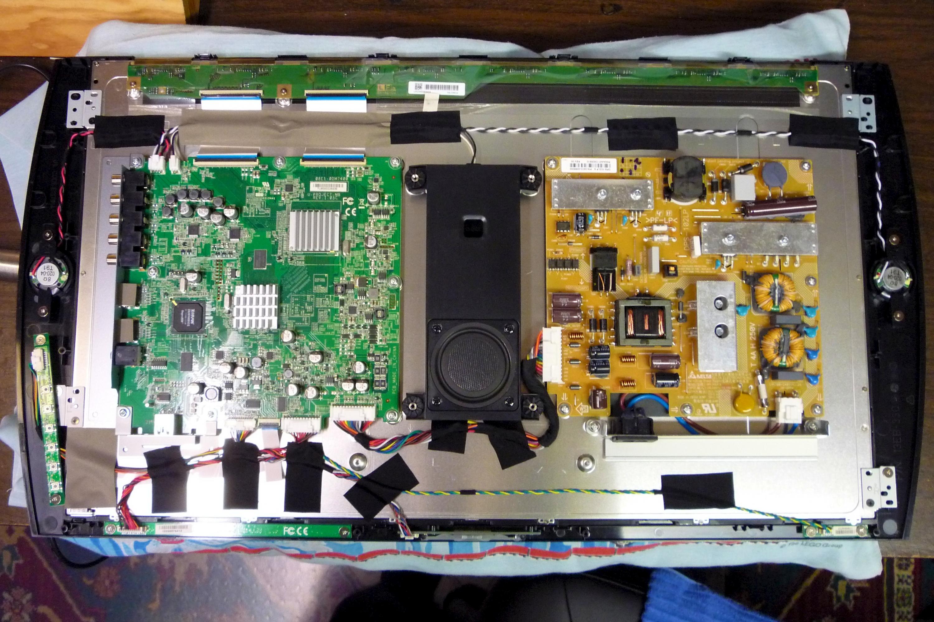 I opened it up and checked out the power supply (which doesn't have any inverter because it's an LED backlight.) It looks to be of surprisingly decent quality and the the +5, +12, and +24 outputs are all working ok.