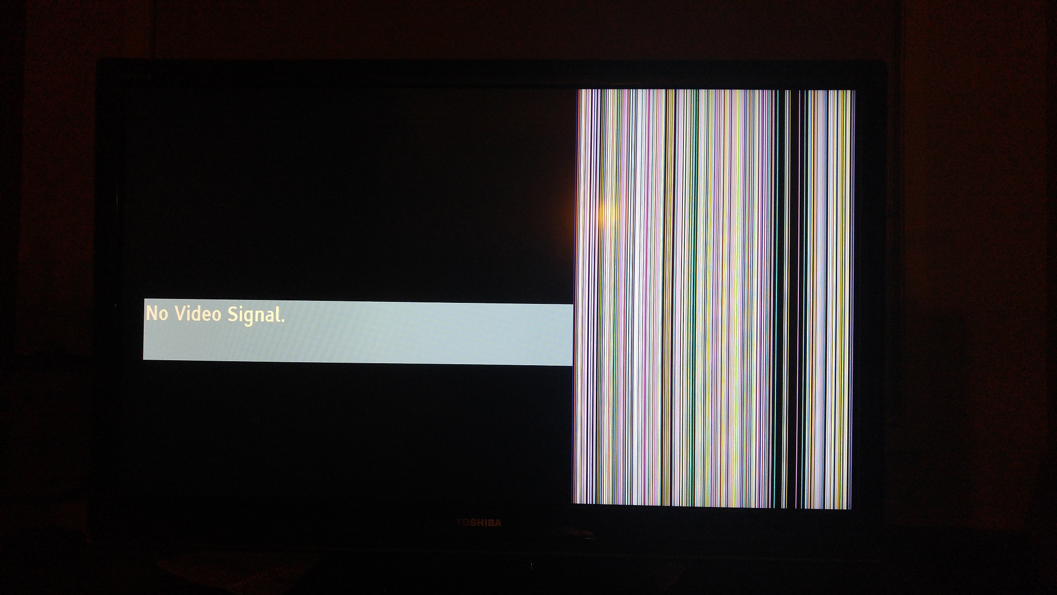 Got this Toshiba 32HL833G that when it turns on, appear black panel whit vertical lines.