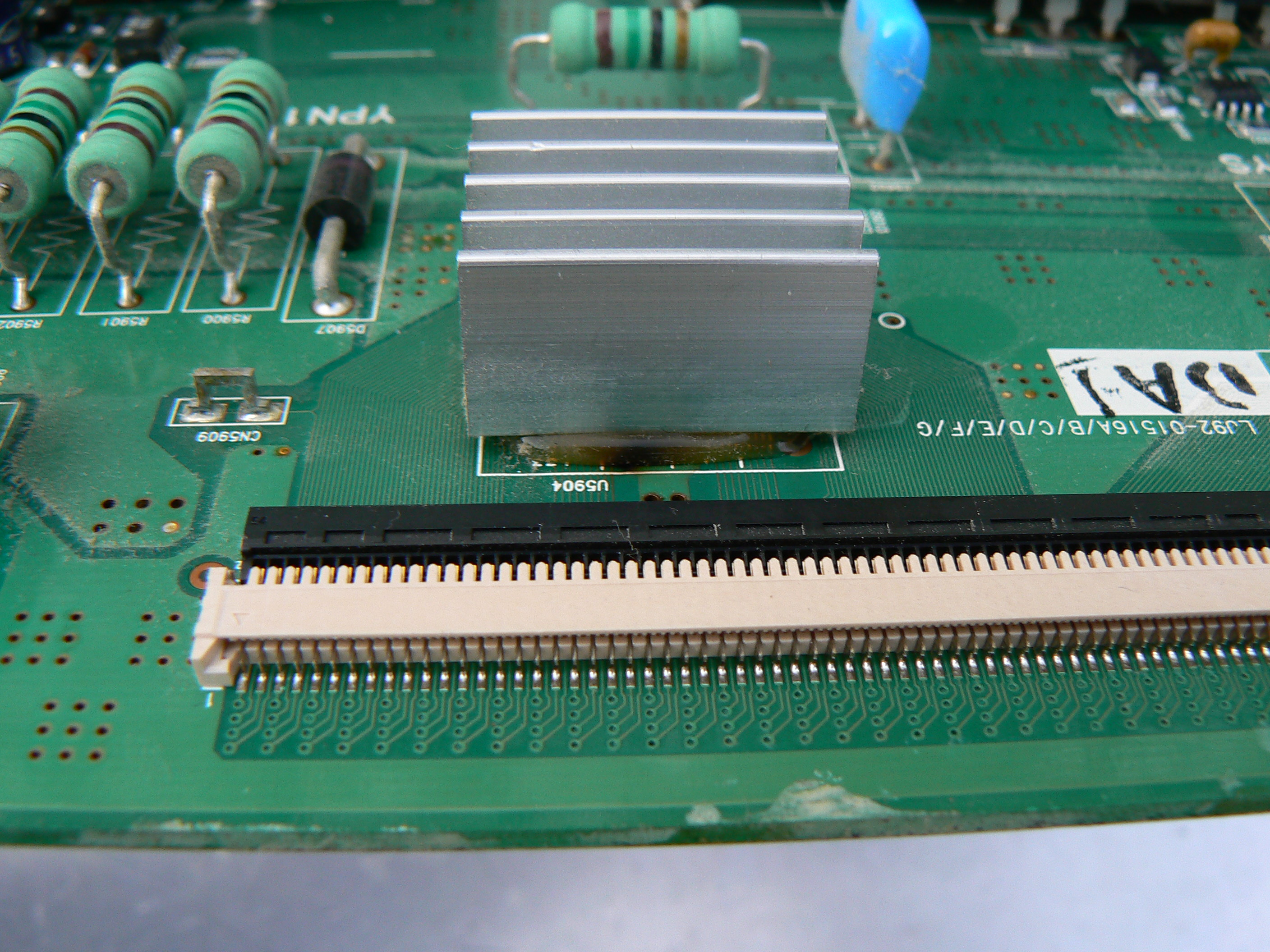 After this the screen would turn on but it had a lot of issues and I could not even discern if it would show a menu. I thought that putting the control board into test mode would be the best way to tell if the screen was actually good. I know the Y-main is bad since one of the drivers gets way hotter than the rest and it shows heat discoloration.