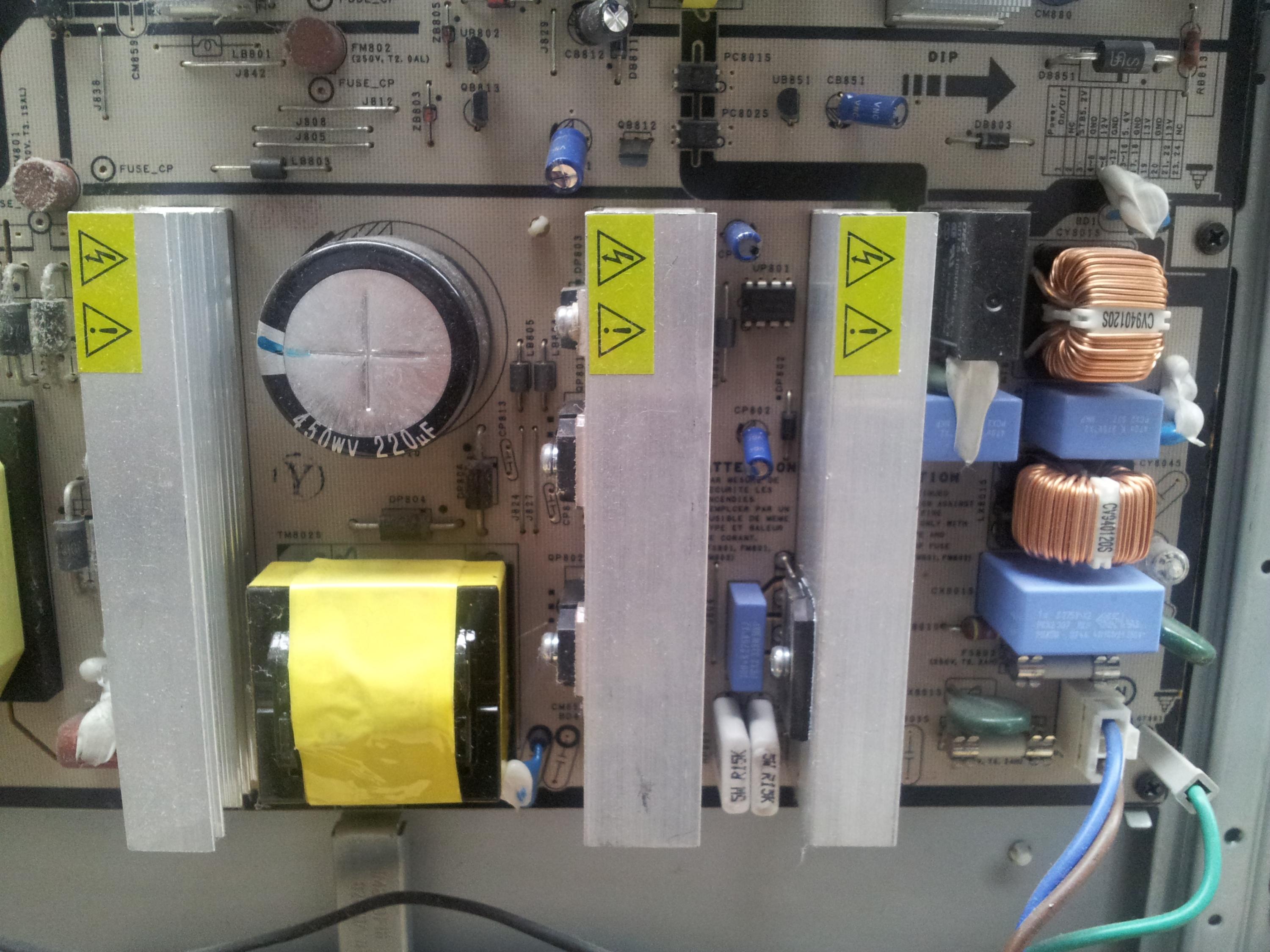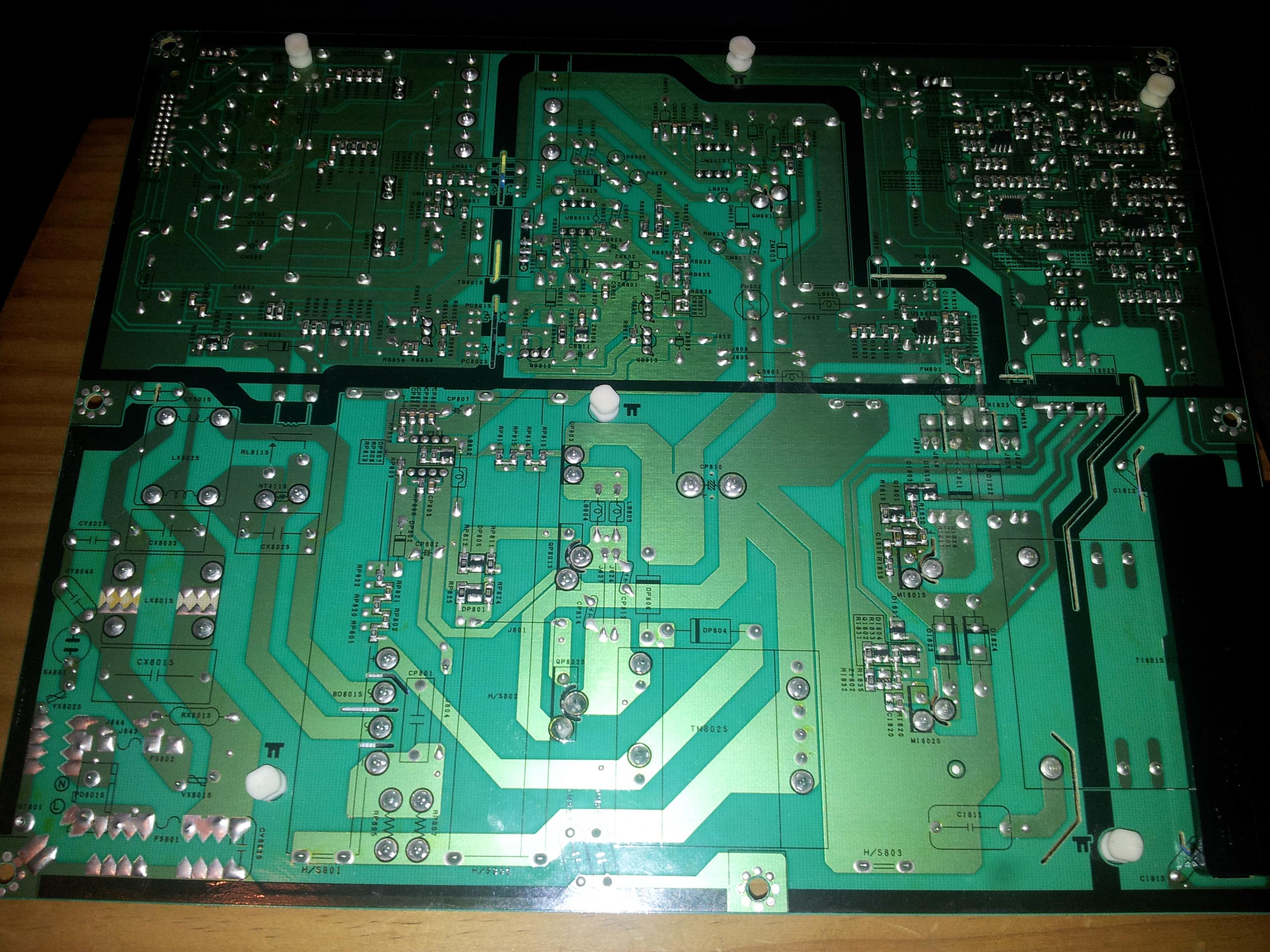 The owner of the TV had the same thing happen while under warranty and it got repaired. All components have factory lead free solder except the two brown capacitors (sam young lxz 10v 2200uf), they are sporting some nice shiny leaded solder on the leads.