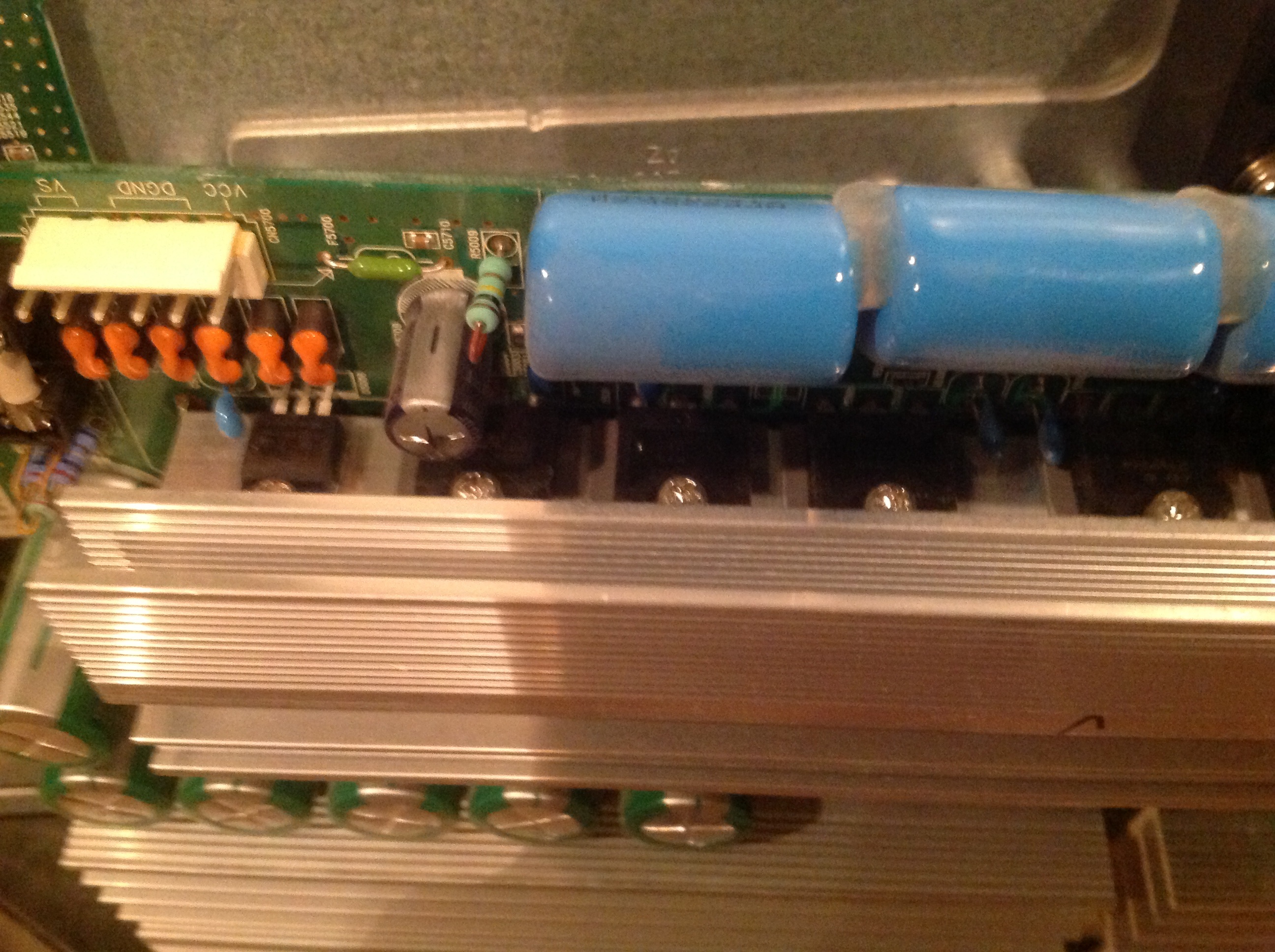 Yeah, I always order extras. I'd do the same thing on the X-main: Check the components near the cap and check the transistors on the heat sink. It looks like there's a green fuse near that cap, too.