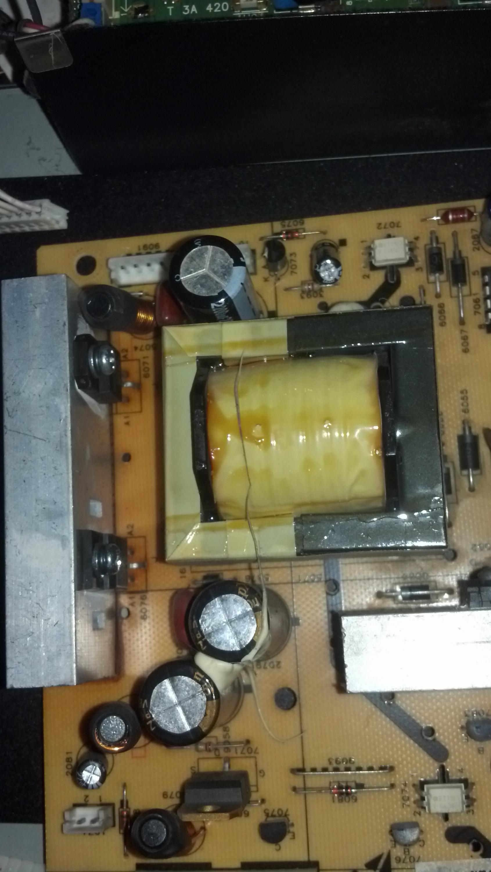 Need a pro! On power supply 3138 103 6282 i had a bad cap board space #2074 2200 uf 25v replaced with 2200uf 35v. I now have some power but the screen will flicker on then shht back down. I have checked over everhthing but i am missing something. Can someone tell me what component would have blown this cap? Maybe that will be my problem. Thanks everyone