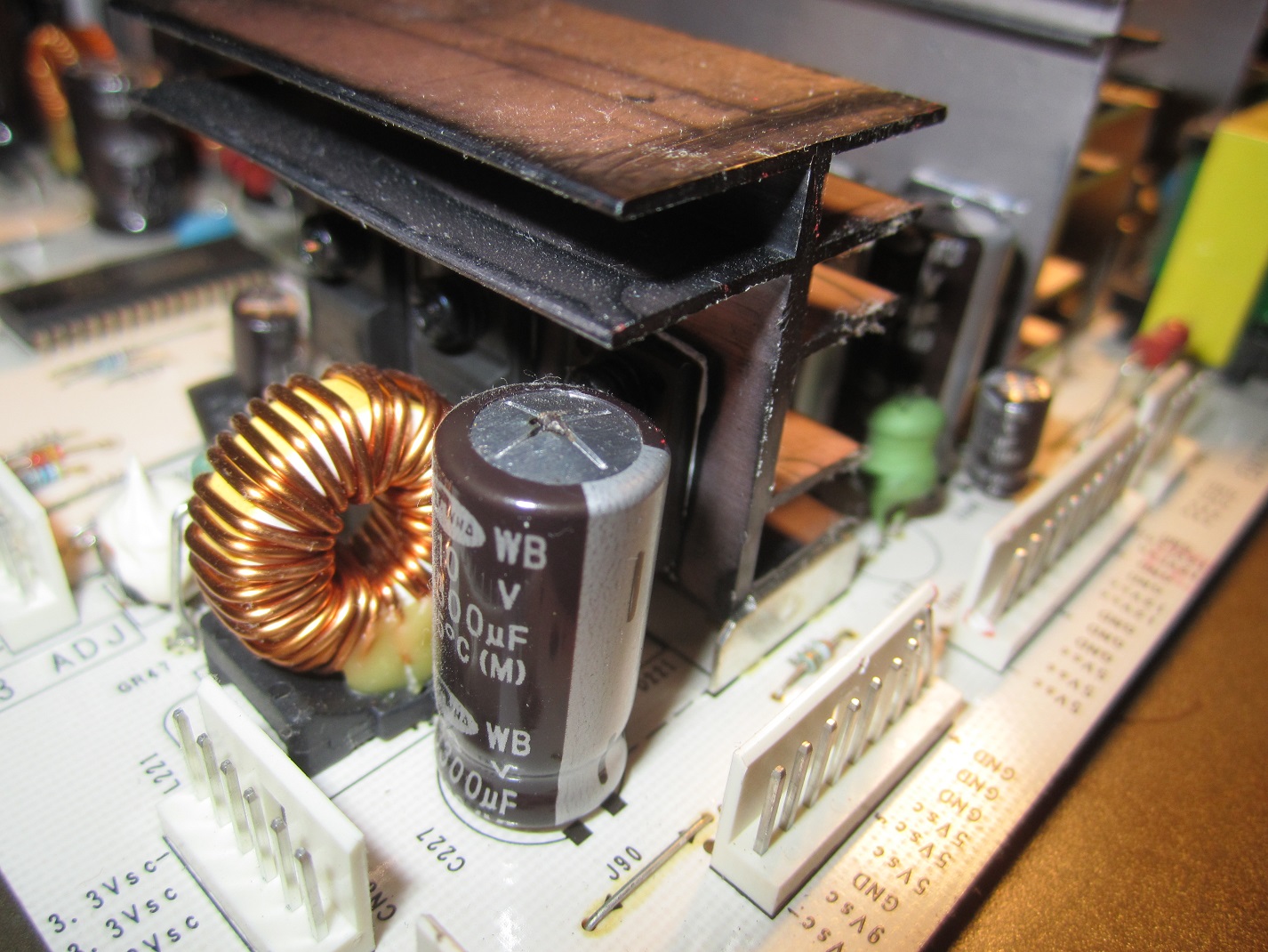 Back to the Vizio VP50HDTV10A at hand: The next day I looked to find the popped caps were 9 Samwha 3300uf 10V and one Samwha 1000uf 10V. I went to my local electronics store and they had a 1000uf 10V in stock and only 4 of the 3300uf's I needed so I skipped those and ordered them all online because they're cheaper that way, and I'd have had to order some of them so I might as well order all of them. I ordered a brand I read was a good one on a couple websites. What I got is Rubycon 3300uf 16V (instead of the 10V) from a supplier (not ebay!) as a replacement because I heard that higher voltage is better as long as they uf is the same and they fit in the location. AND, they were on sale for 59 cents each. Now, come to find out what I ordered was PK series which are not low ESR. I had not heard of ESR when I'd ordered them. I'd heard of ripple current, of which the 16V caps were higher in so I am thinking that is better, but I did not know of ESR. * I had not been to badcaps * I am thinking here that ESR will relate to the life of the capacitors in this application and that having 16V in place of the 10 might help in that area as well. Whatever the case, I am hoping the caps I got will work for a while at least. This would allow me to move forward and replace those caps with the proper ones later.