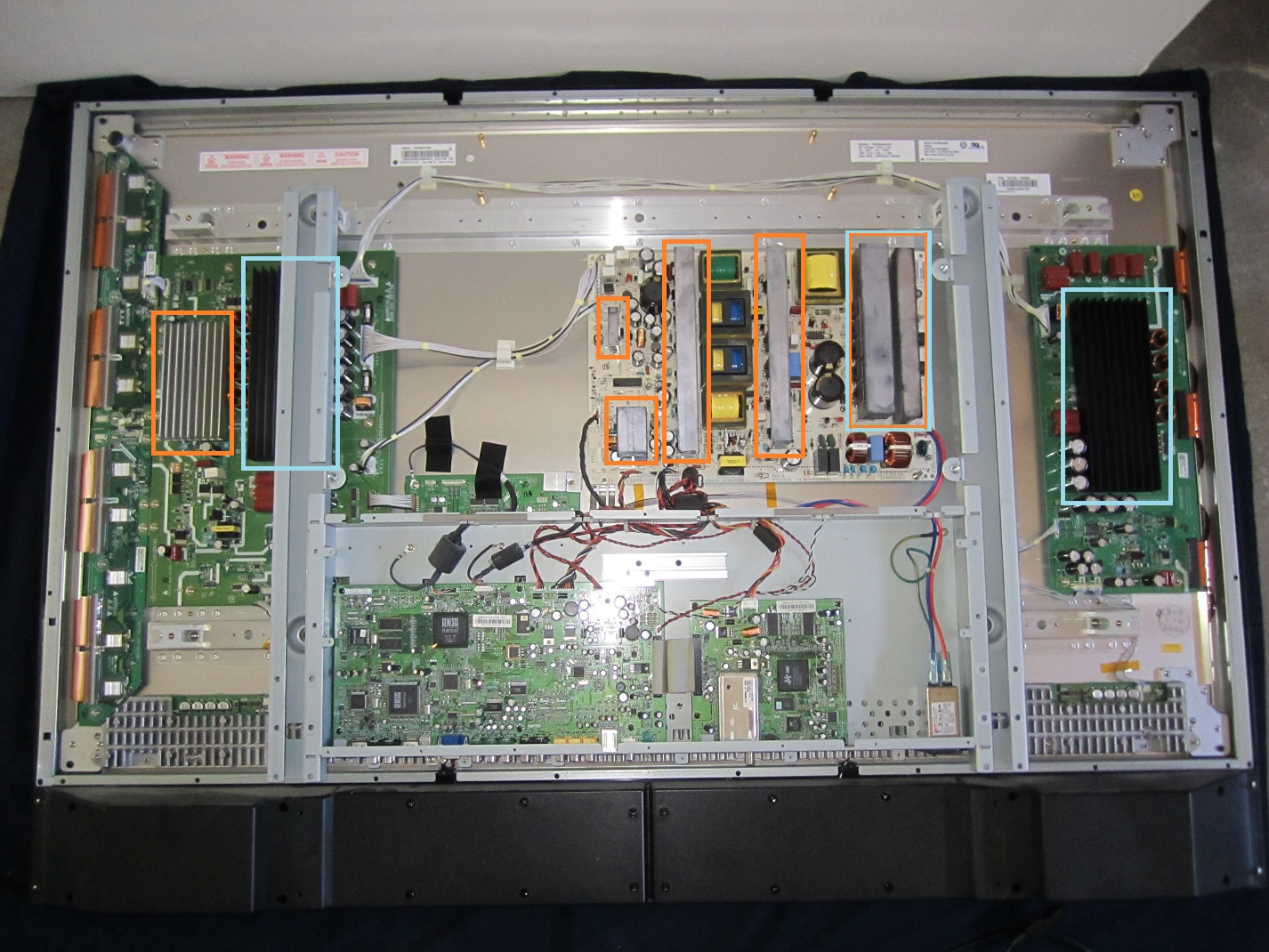 Quick Background on me: Amateur Mr Fix-It. I have a soldering iron, a solder sucker, a cheap multi-meter.... and I'm not afraid to use them. I got started in this by figuring out how to fix a tv about three months ago when my neighbor's 2008 Samsung LCD stopped turning on. He just went and bought a new HDTV and then gave me that “old” Samsung to tinker with. A Google search, a youtube video, a trip to an electronics parts store, and 4 capacitors later I had a working like new LCD tv. (Gave it to a different, needy neighbor who did not have a high def tv.) That success peaked my interest. Later, I got stumped on an early Pioneer Plasma (pre-hdmi) but redeemed myself repairing a Polaroid 32” LCD. (Sold it for $100 bucks on Craigslist) Now I have this Vizio that is actually a very nice, big 50” plasma that I'd really like to keep alive on this earth (And keep period!) for several more years before the recycle company gets it.