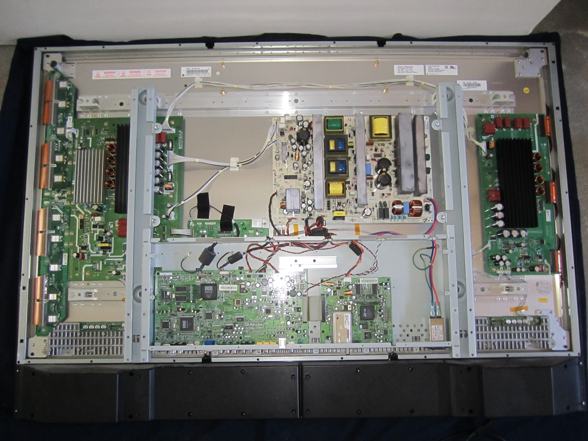 This is the TV This TV is a little different from the Samsung I have worked on. Power supply is on the Left side, Main Bd is on the right side, T-CON , not in the picture is on the bottom. I am assuming that the boards in the middle are the LED...