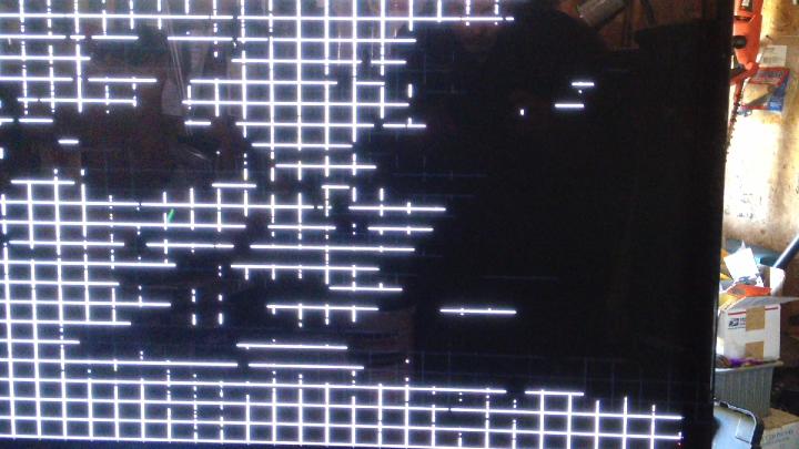 The previous owner stated that there had been white dots on the screen which from the description sounded like some lenses fell of the backlight LEDs.