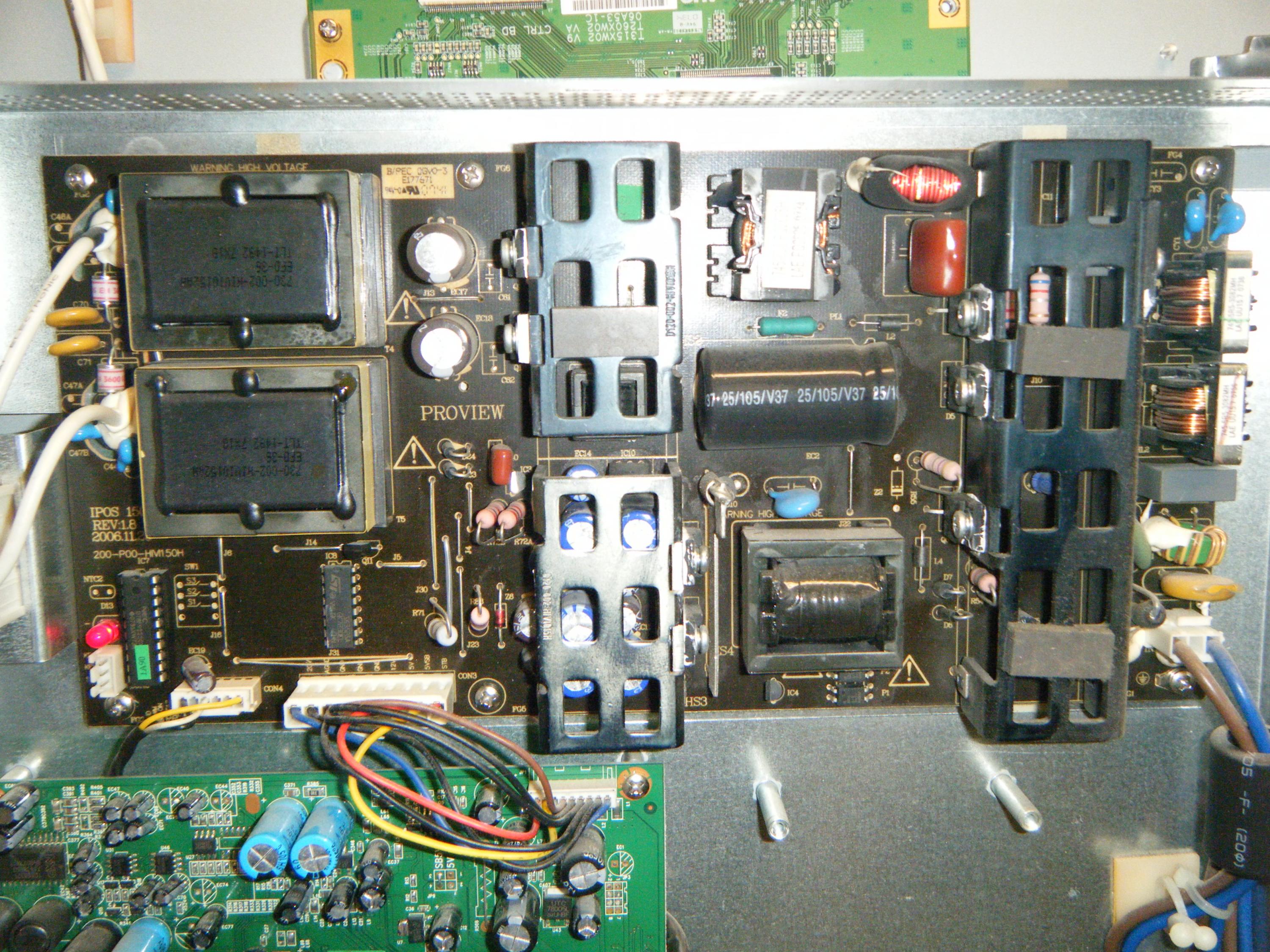 I have taken delivery of a Acoustic Solutions CTVL32W3HD, the fault to person selling it was that it was dead. I switched it on and I get the blue light on the front and the red LED flashing on the IPOS 150 Rev 1.8 PSU. I have checked the fuse on the Tcon and that is fine, as I was thinking that no picture after the blue light could be Tcon. The cap C81 is slightly bulging but has not leaked. I take it the red LED should flash on the PSU?