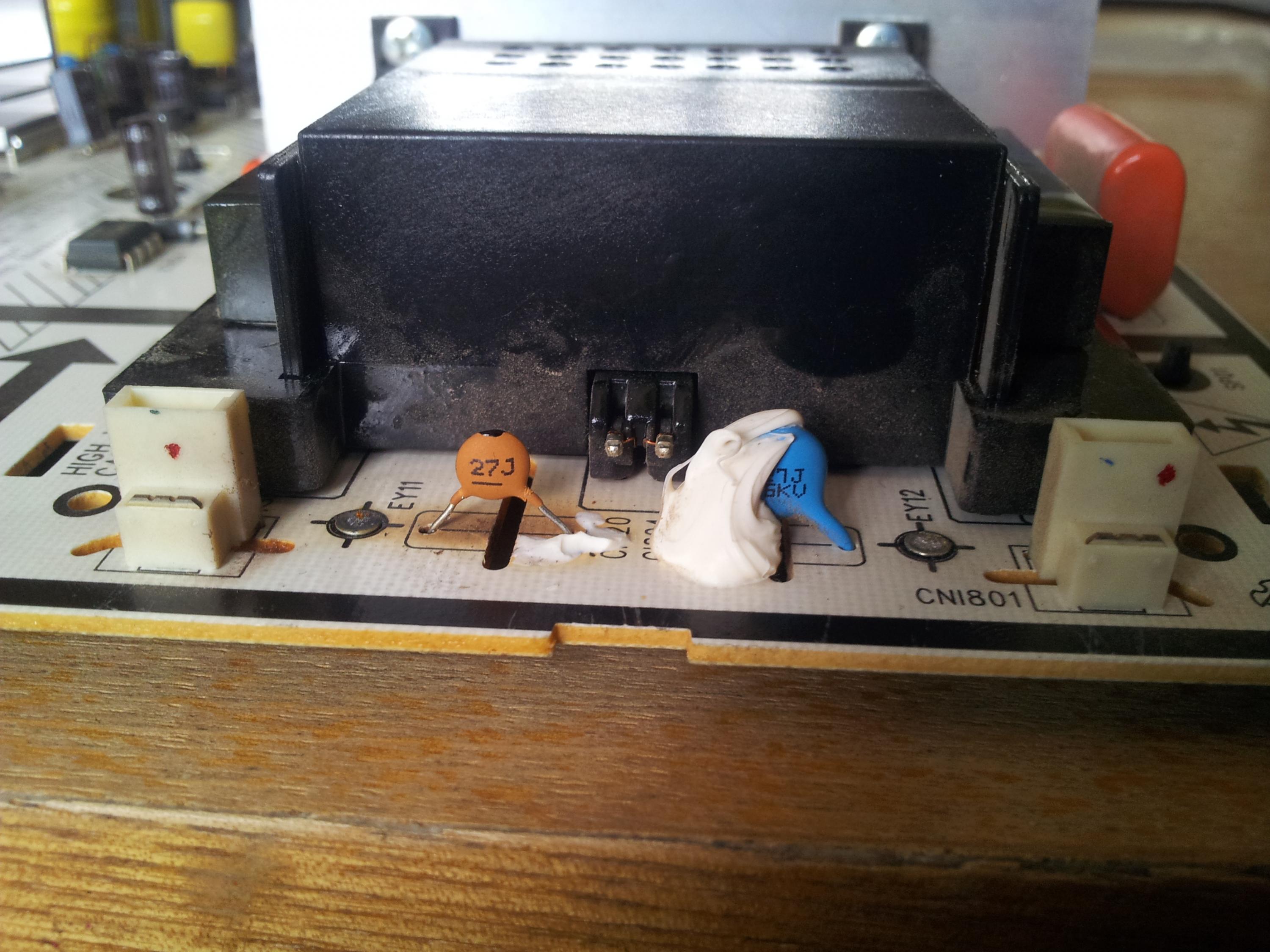 Anyway upon further inspecton one cap has gone black / brown and split, eventually breaking off when i tried to move it to see the numbers on it.