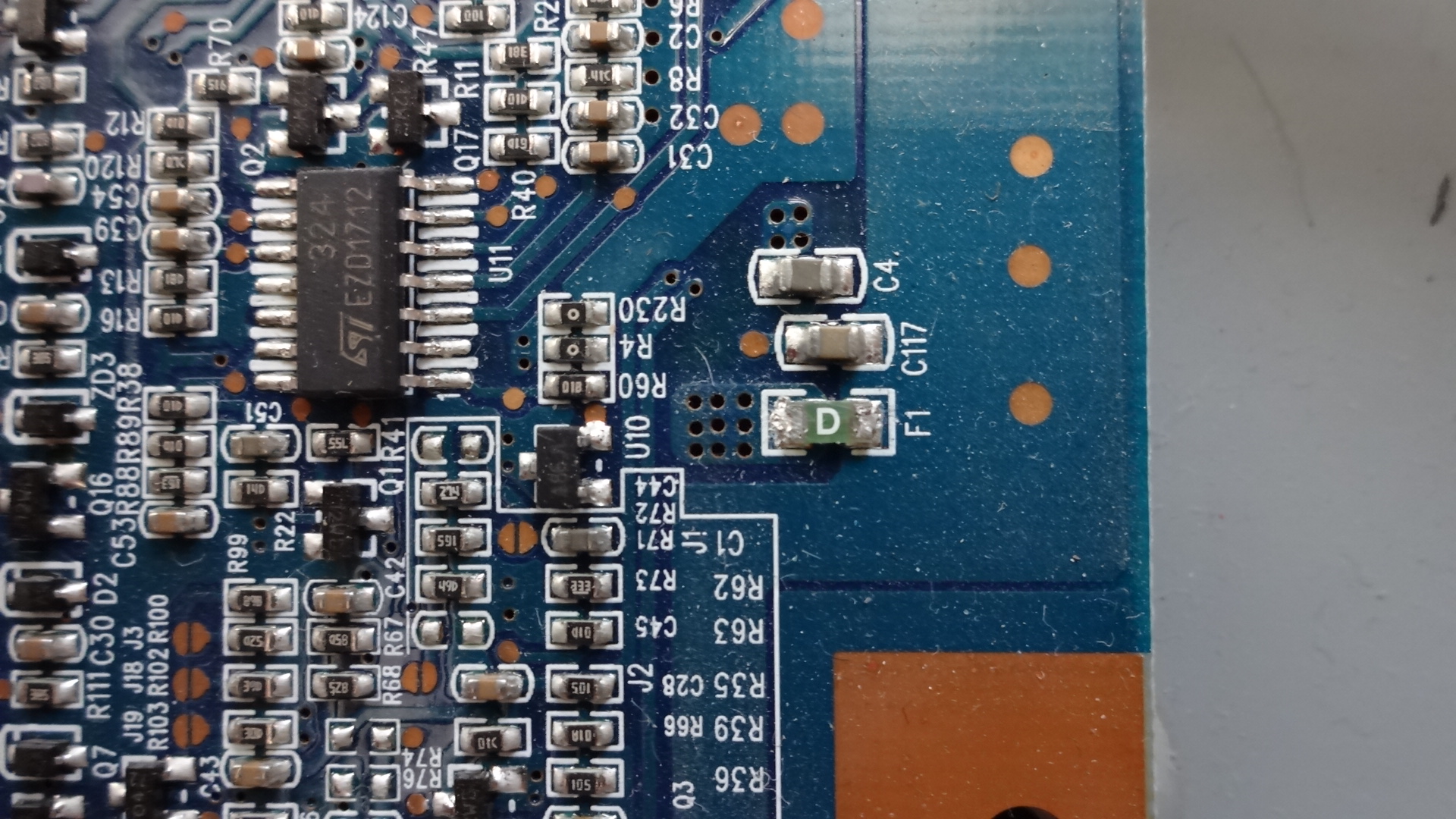 After some testing I have found that the F1 fuse on the inverter board reads at somewhere between 3 and 20MΩ. I was hoping someone could help me find a replacement part or at least point me in the right direction. I took a closeup picture of the fuse, it is the fourth picture attached to this post. Should I try bypassing the fuse?