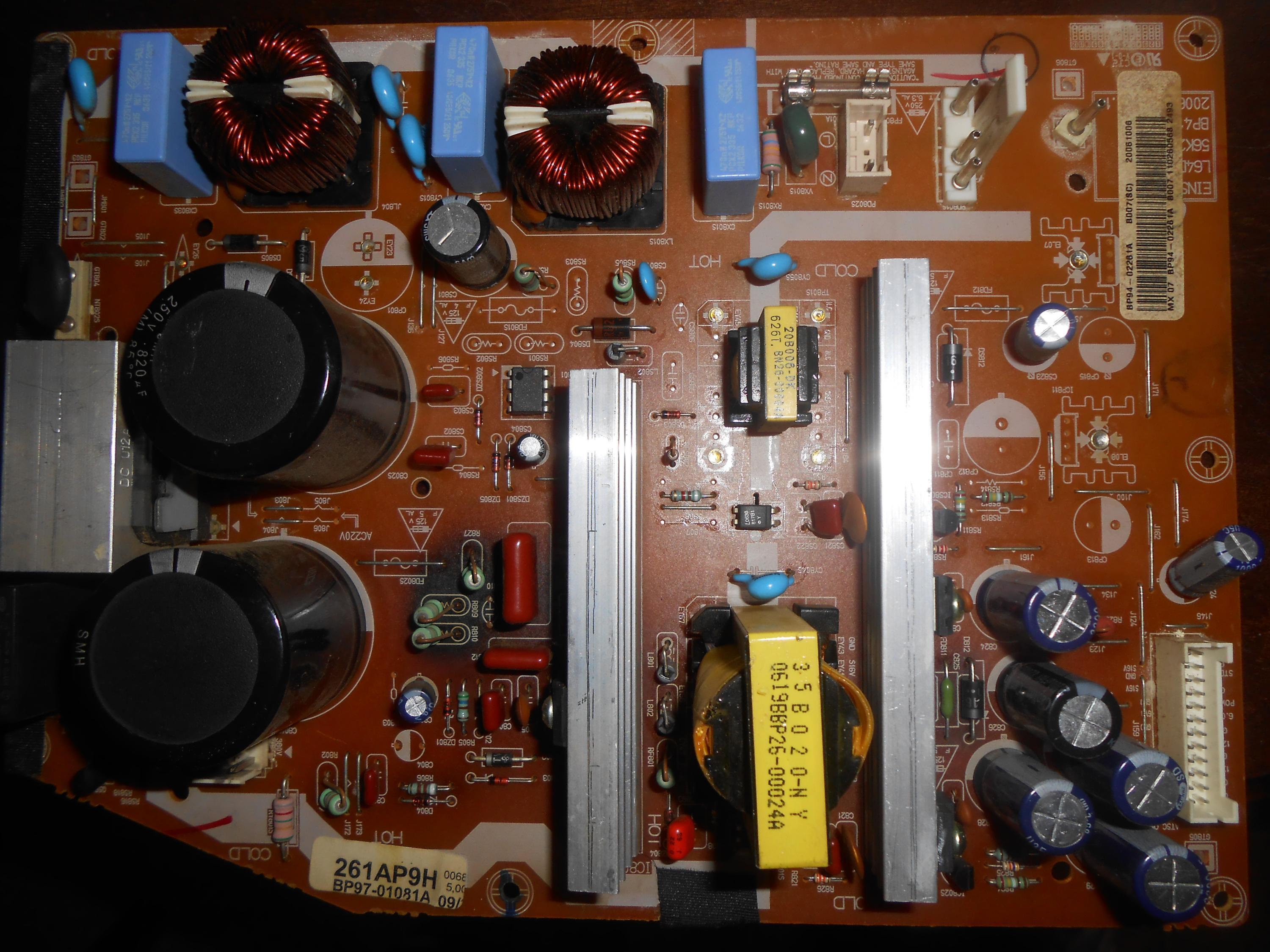 "Samyoung 250v 820uf " There must be other higher voltage (450VDC) for the PFC Voltage booster circuits, unless they put those two caps in series.