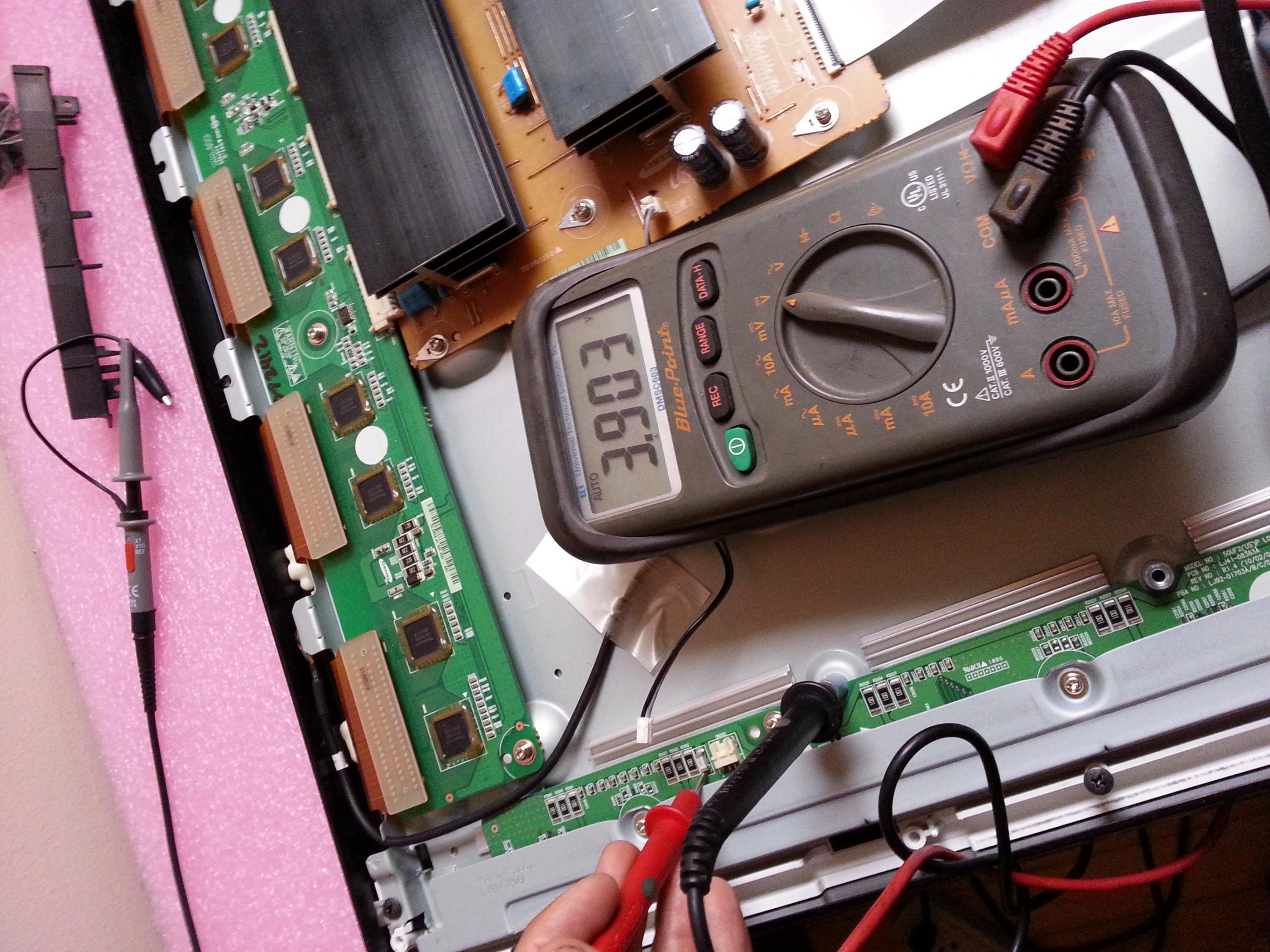 Can you check with your black probe on the chassis of the TV, red probe on one end of fuse, then other, and record both readings for us?