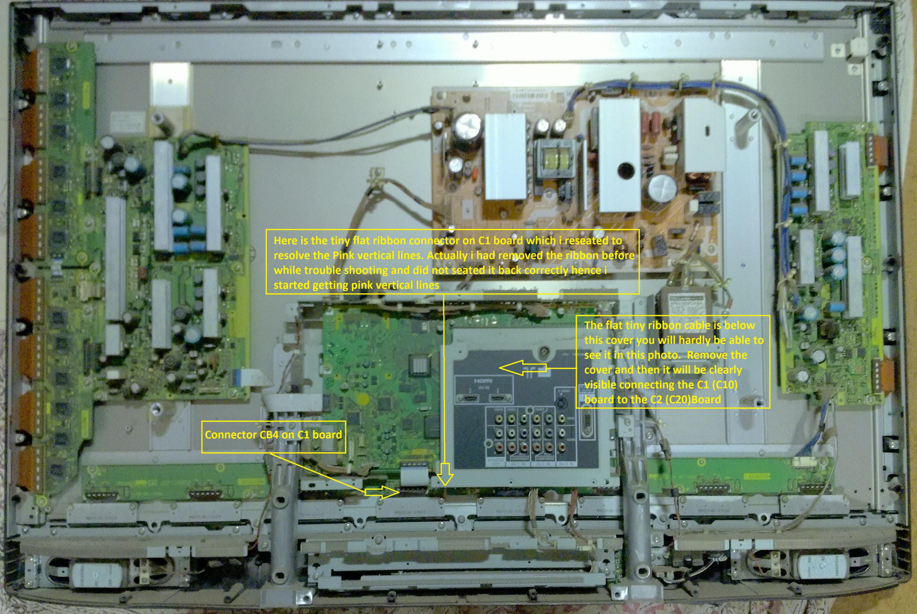 I am hoping to narrow down to a board or cable that I can replace. This set is a 42 inch so there is only two buffer IC board, but the two line location seems to located across the two IC board, therefore I am wondering if the D board or something more higher level is the issue?