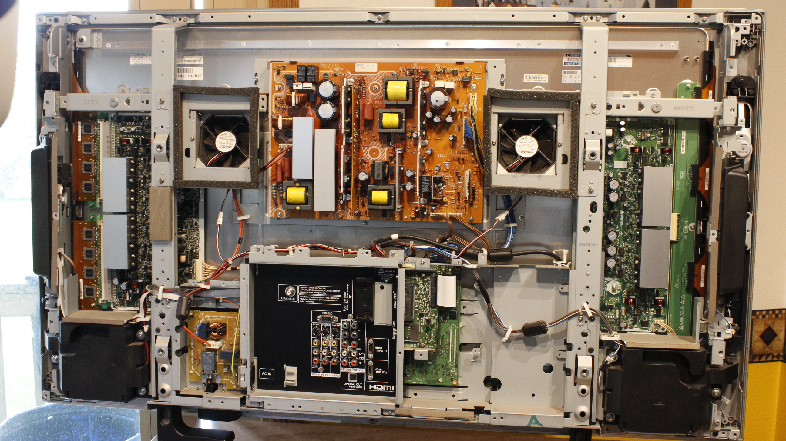 I have a Hitachi 42HDS69 plasma TV that works perfectly for about 15-20 minutes and then in the near middle of the screen, about 2 inches wide from top to bottom, there are vertical lines spaced about 1/8 of an inch apart, so about 30 or 40 lines that you see.